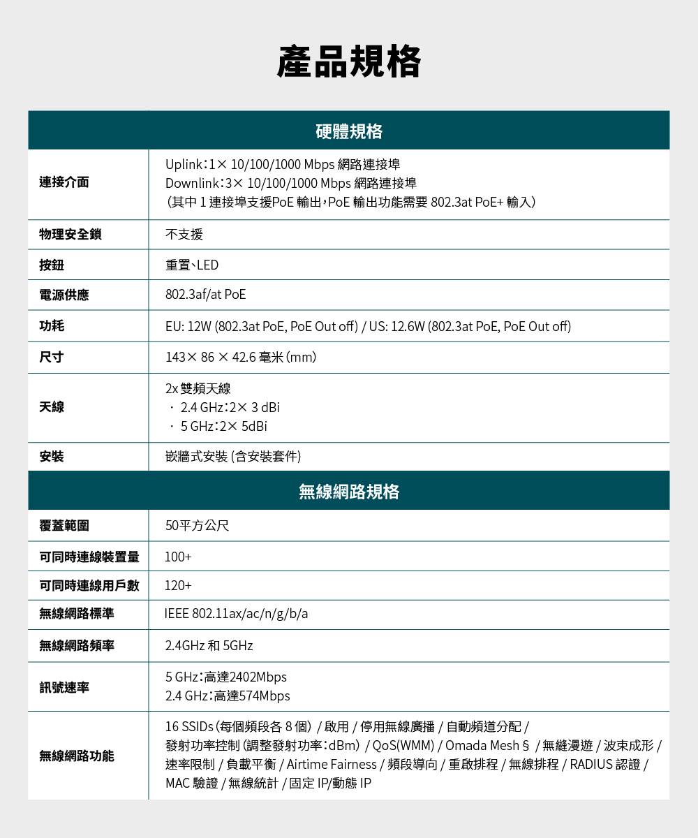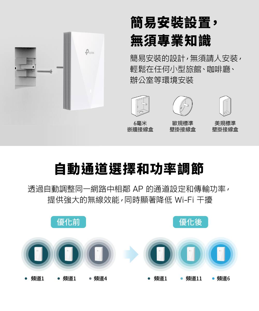 TP-Link EAP655-Wall 商用無線網路基地台/嵌牆式/AX3000/WiFi6