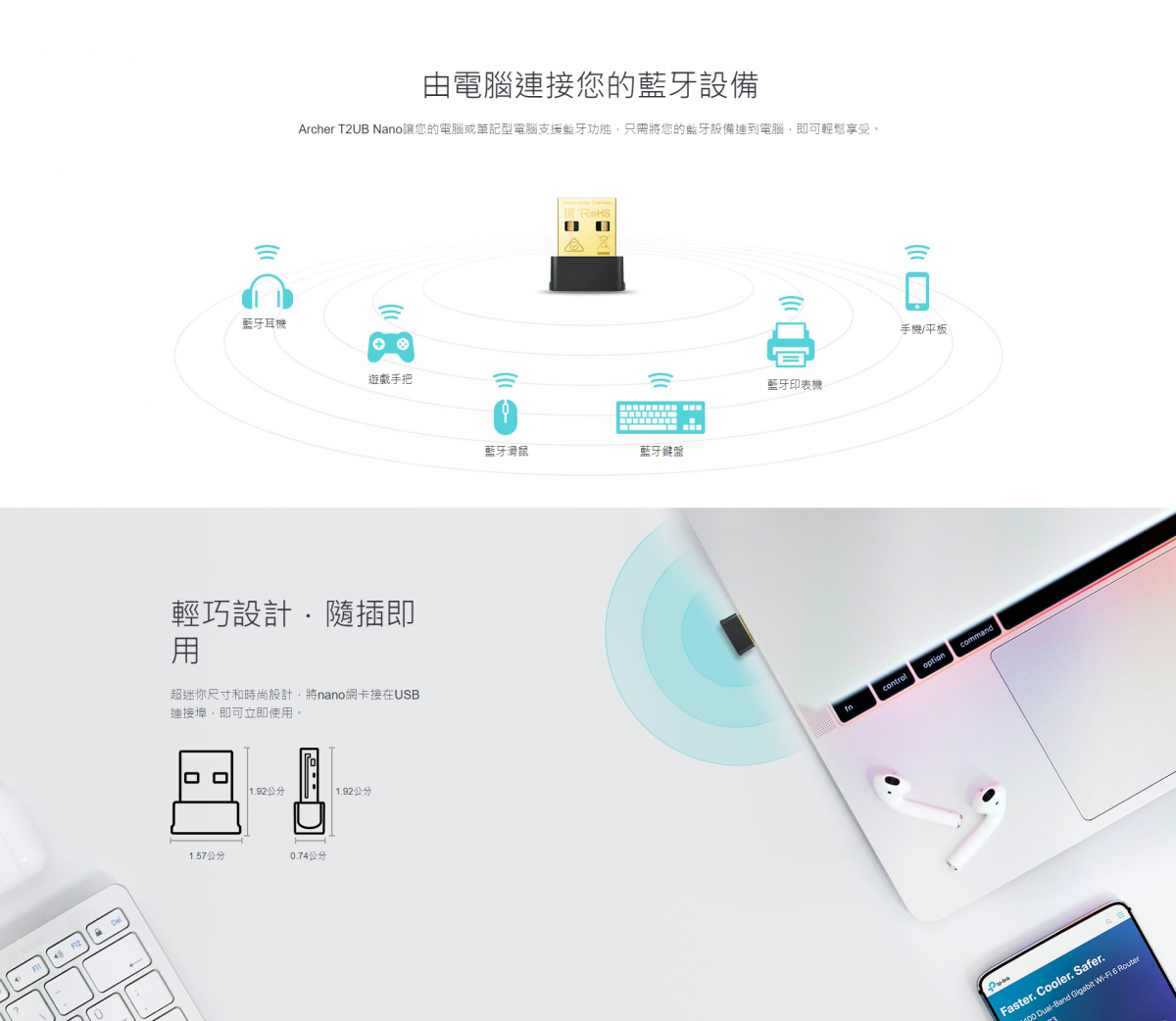 • 支援WiFi& 藍牙雙工,㇐埠雙效,同步執行