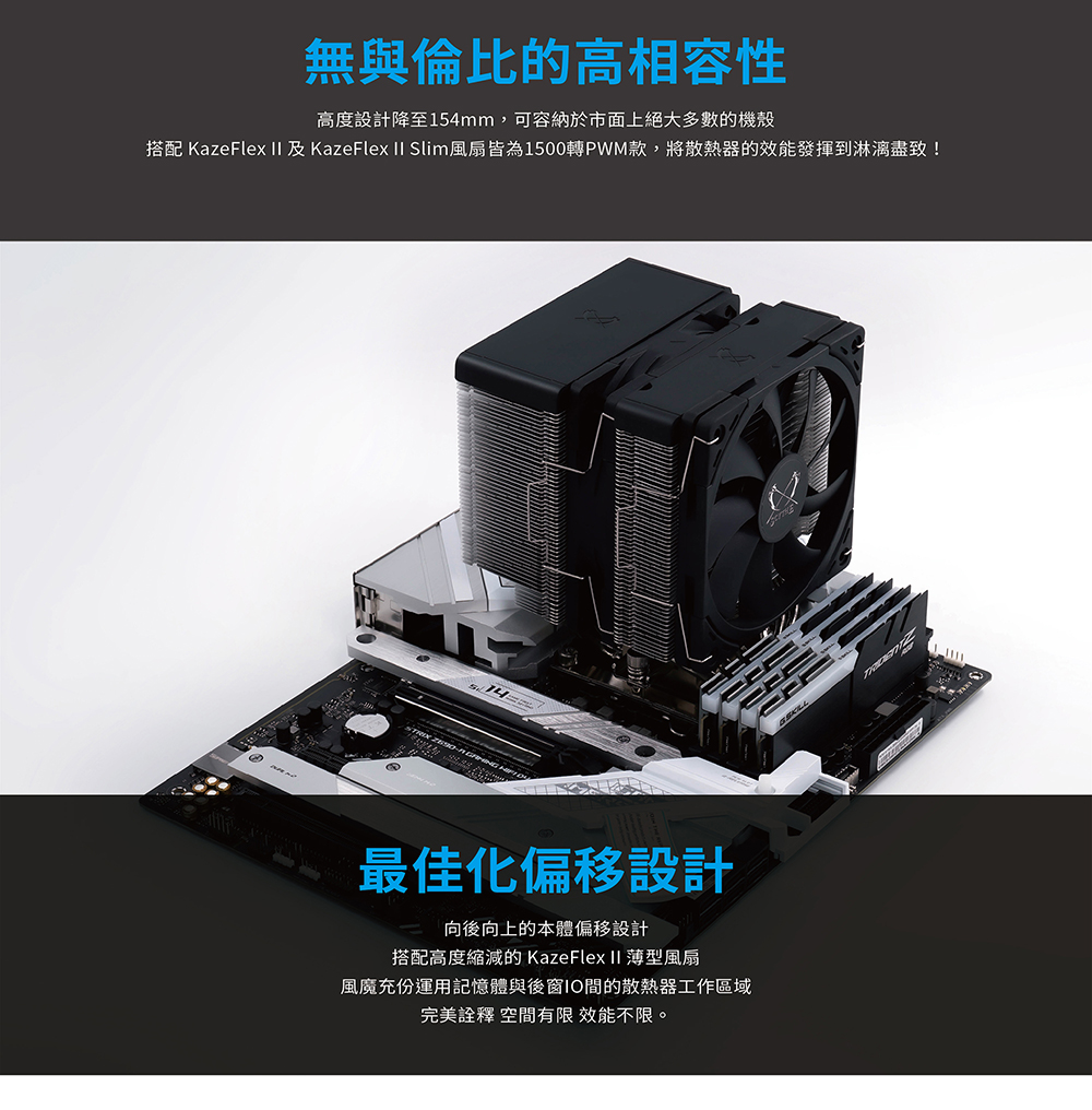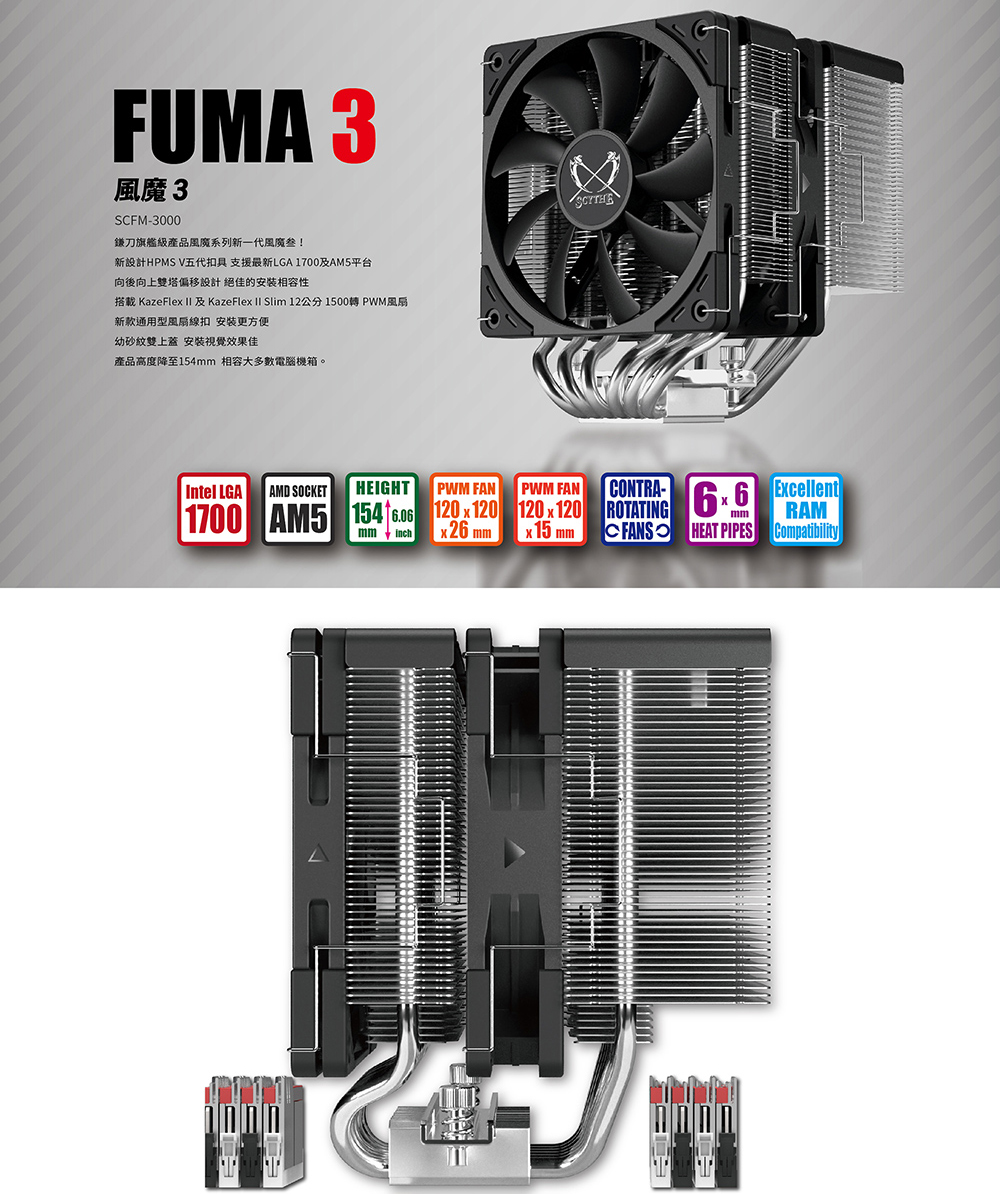 ▶風魔全新進化, 性能再次提升 ▶無與倫比的高相容性, 高度降至154mm ▶最佳化偏移設計, 讓空間不再受限 ▶特殊風道設計, 反葉扇讓氣流更加集中 ▶全新專用扣具, 安裝更加精準 ▶支援 Intel / AMD 多平台易安裝扣具 原廠資訊