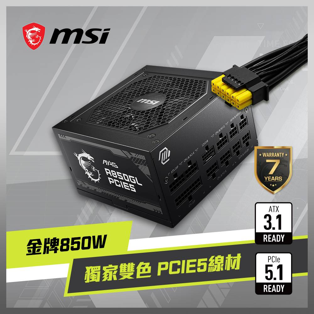 微星 MAG A850GL PCIE5 (80+金牌/PCIe 5.1/ATX3.1/雙色16Pin/全模組/七年保固)