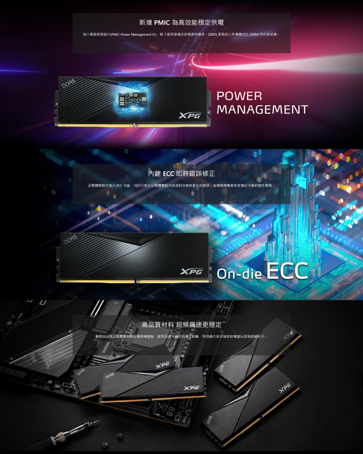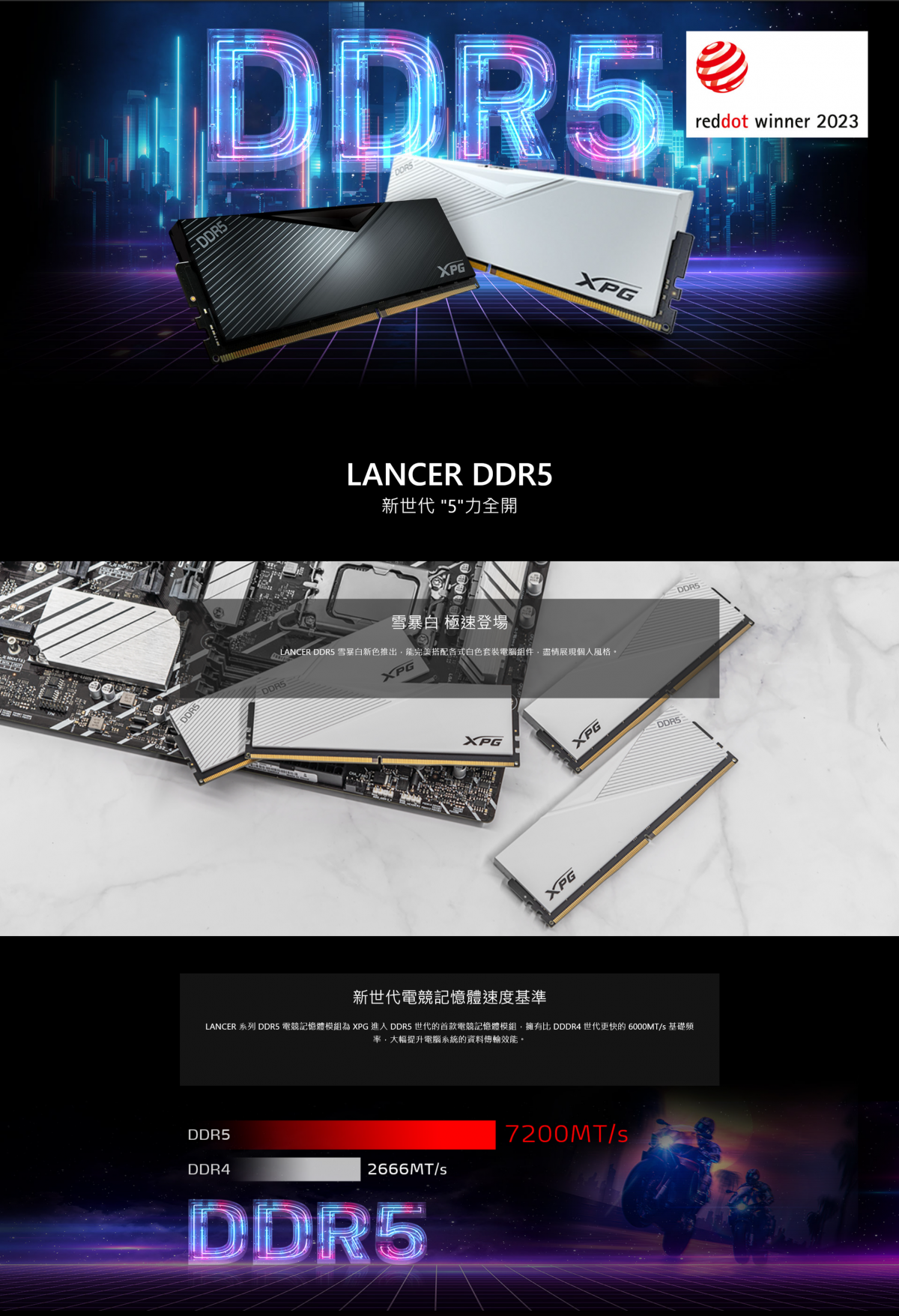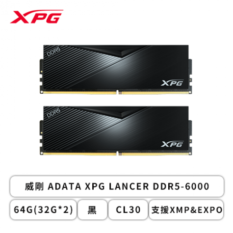 威剛 XPG LANCER DDR5-6000 64G(32G*2)-黑(CL30/支援XMP&EXPO)