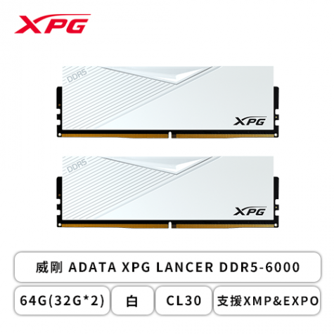 威剛 XPG LANCER DDR5-6000 64G(32G*2)-白(CL30/支援XMP&EXPO)