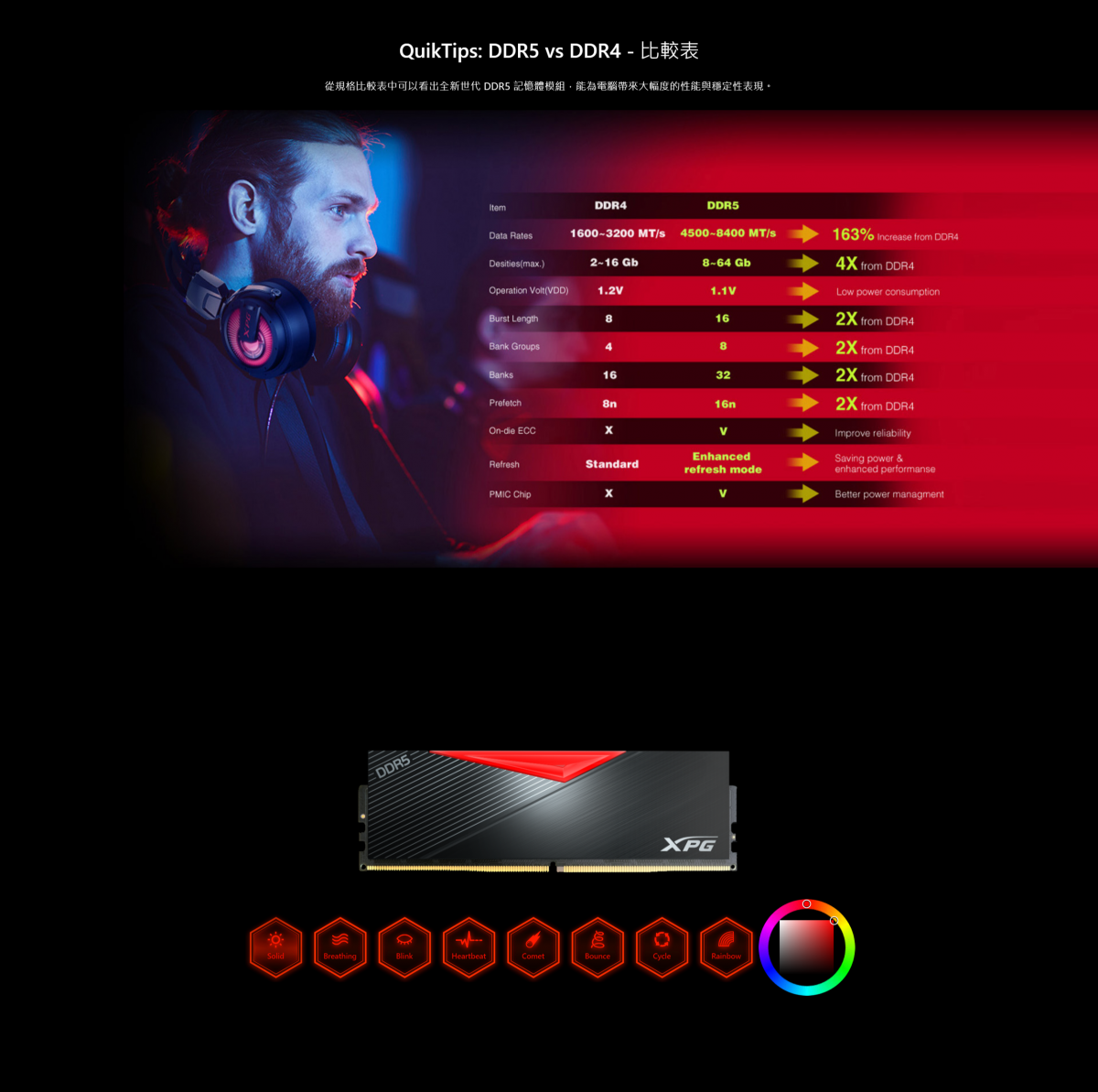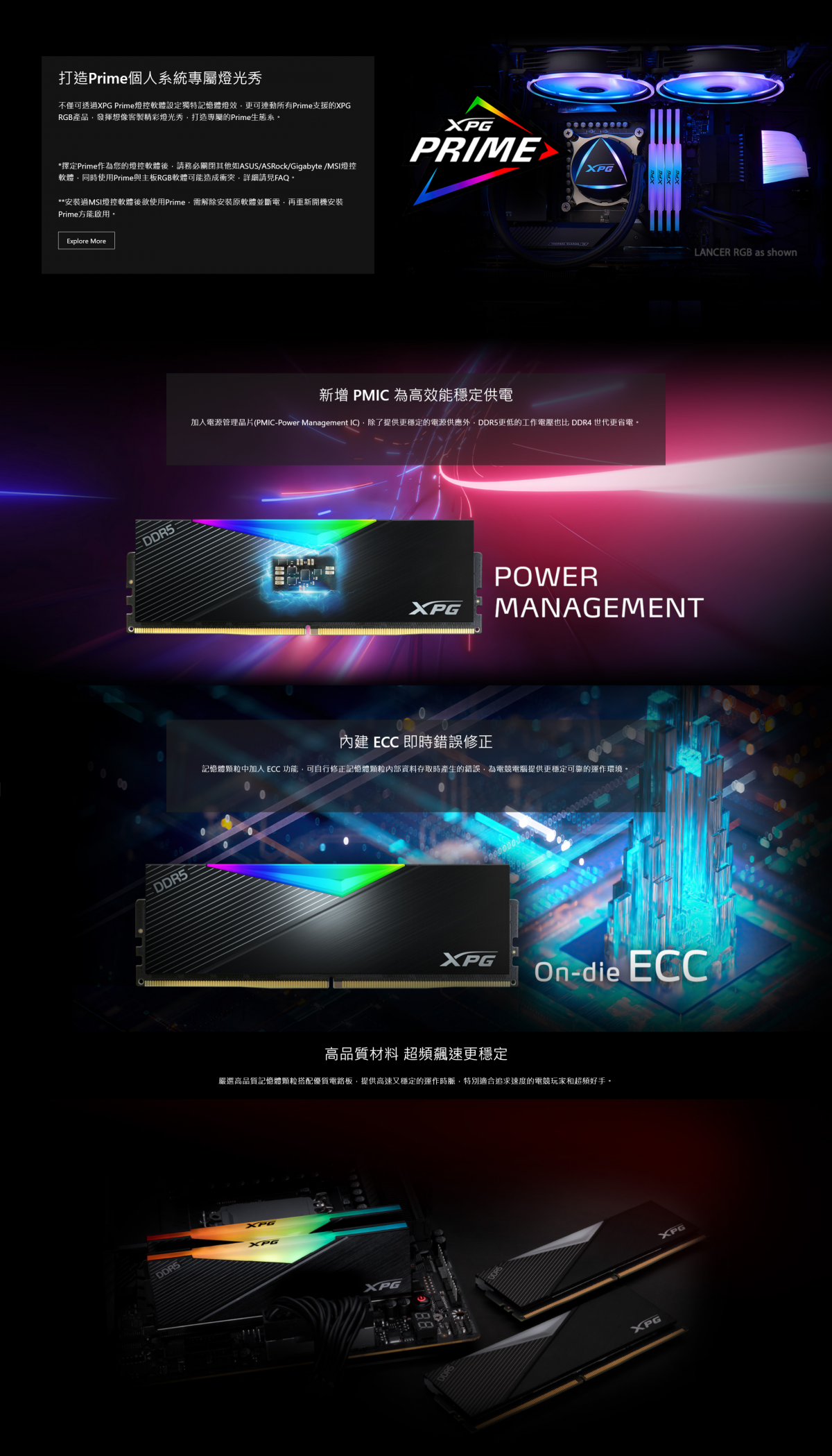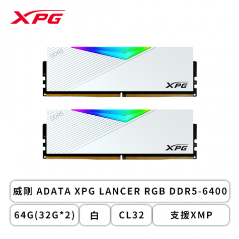 威剛 XPG LANCER RGB DDR5-6400-64G(32G*2)-白(CL32/支援XMP&EXPO)
