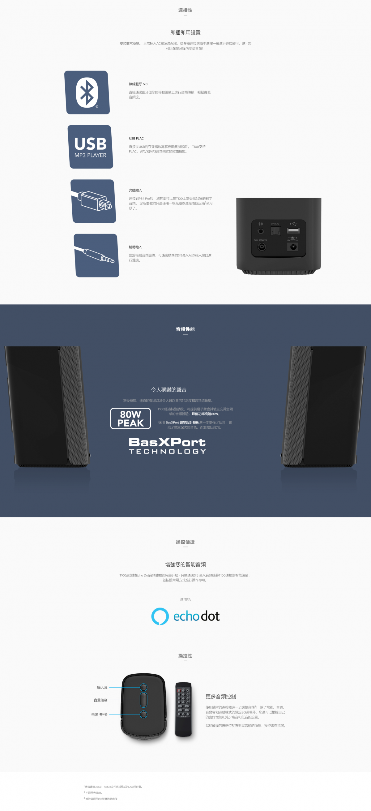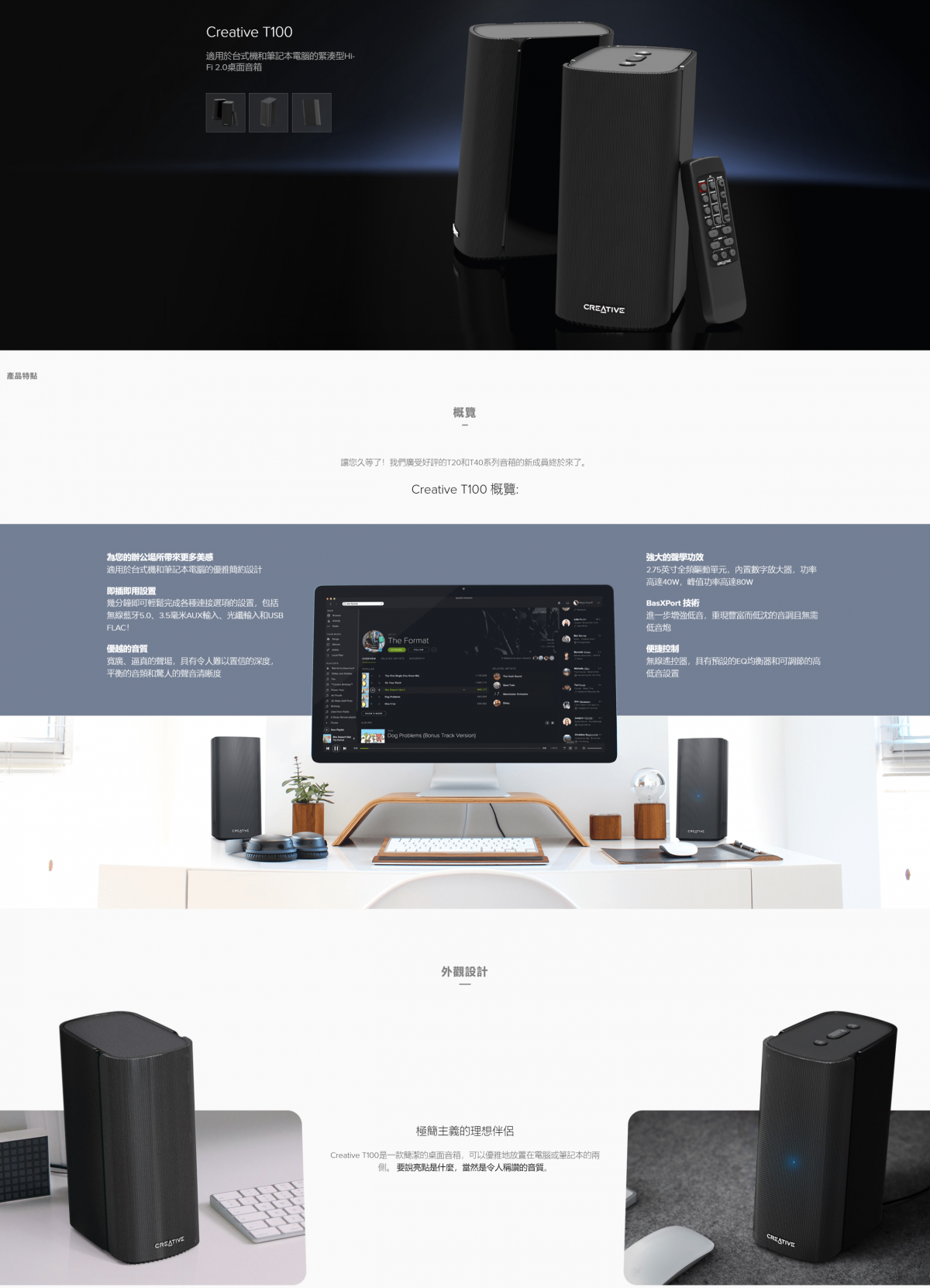 Creative T100 Hi-Fi 2.0 桌面二件式喇叭/藍芽5.0