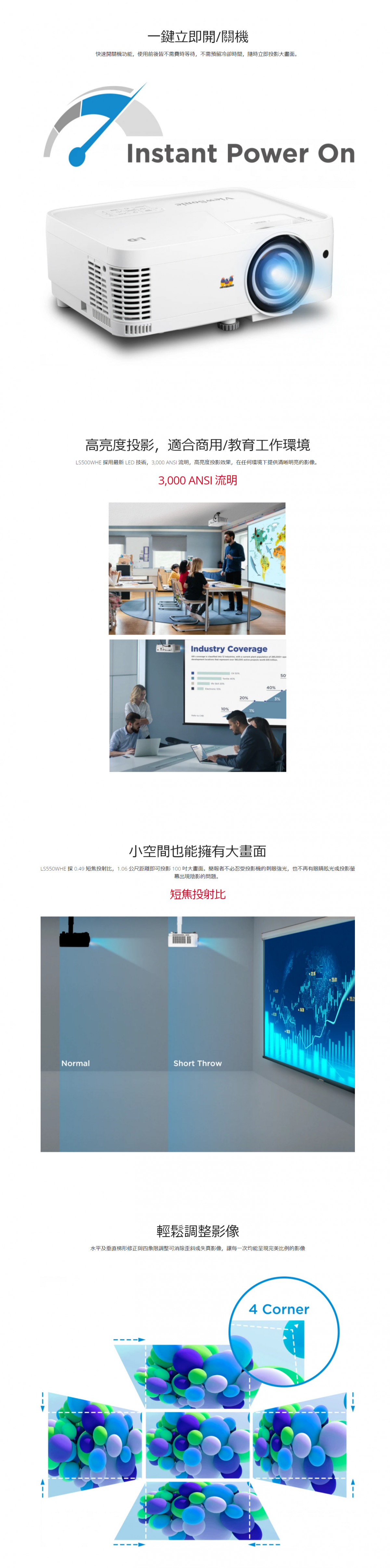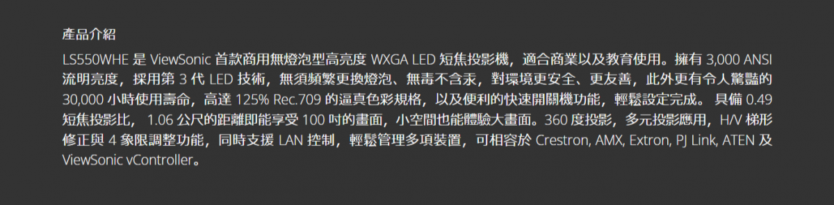 【ViewSonic 優派】LS550WHE 短焦投影機(3000流明)