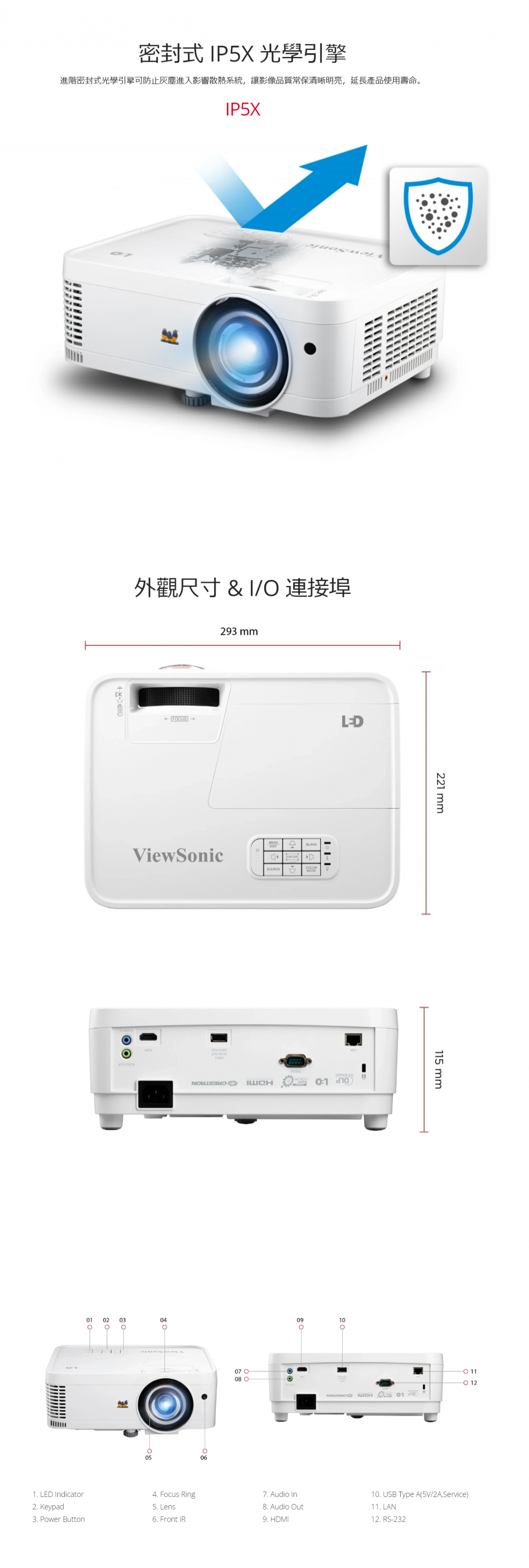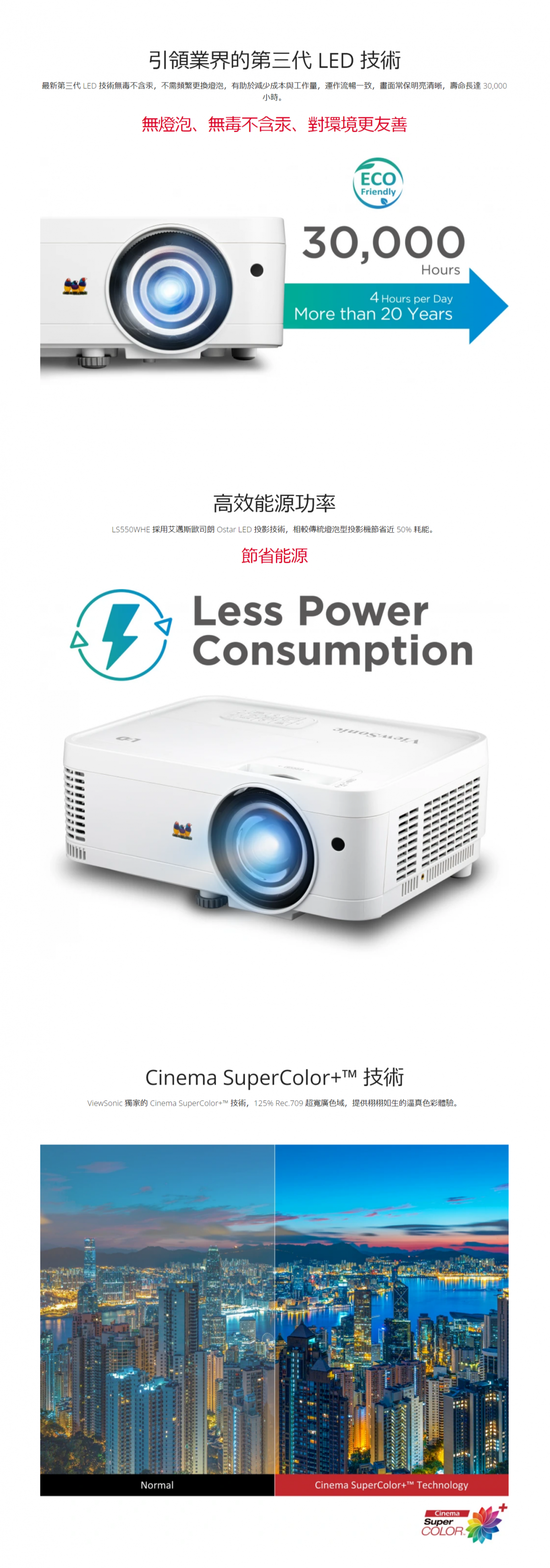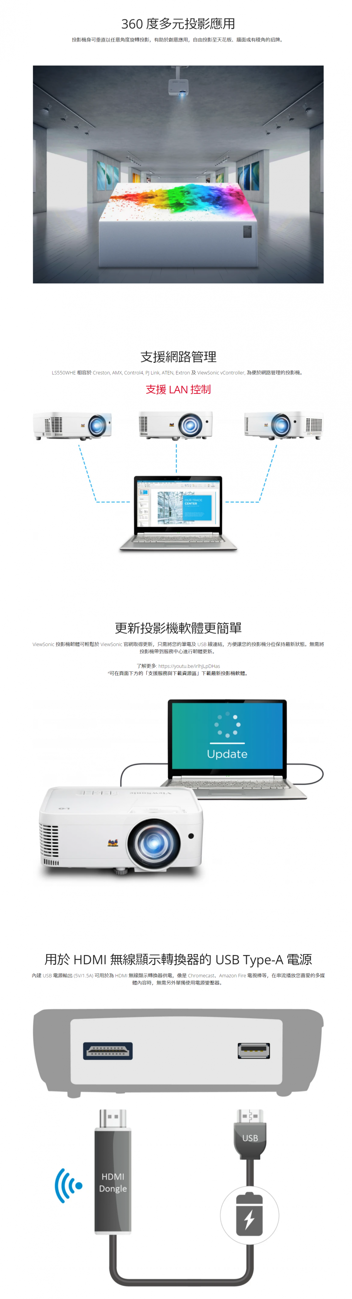 【ViewSonic 優派】LS550WHE 短焦投影機