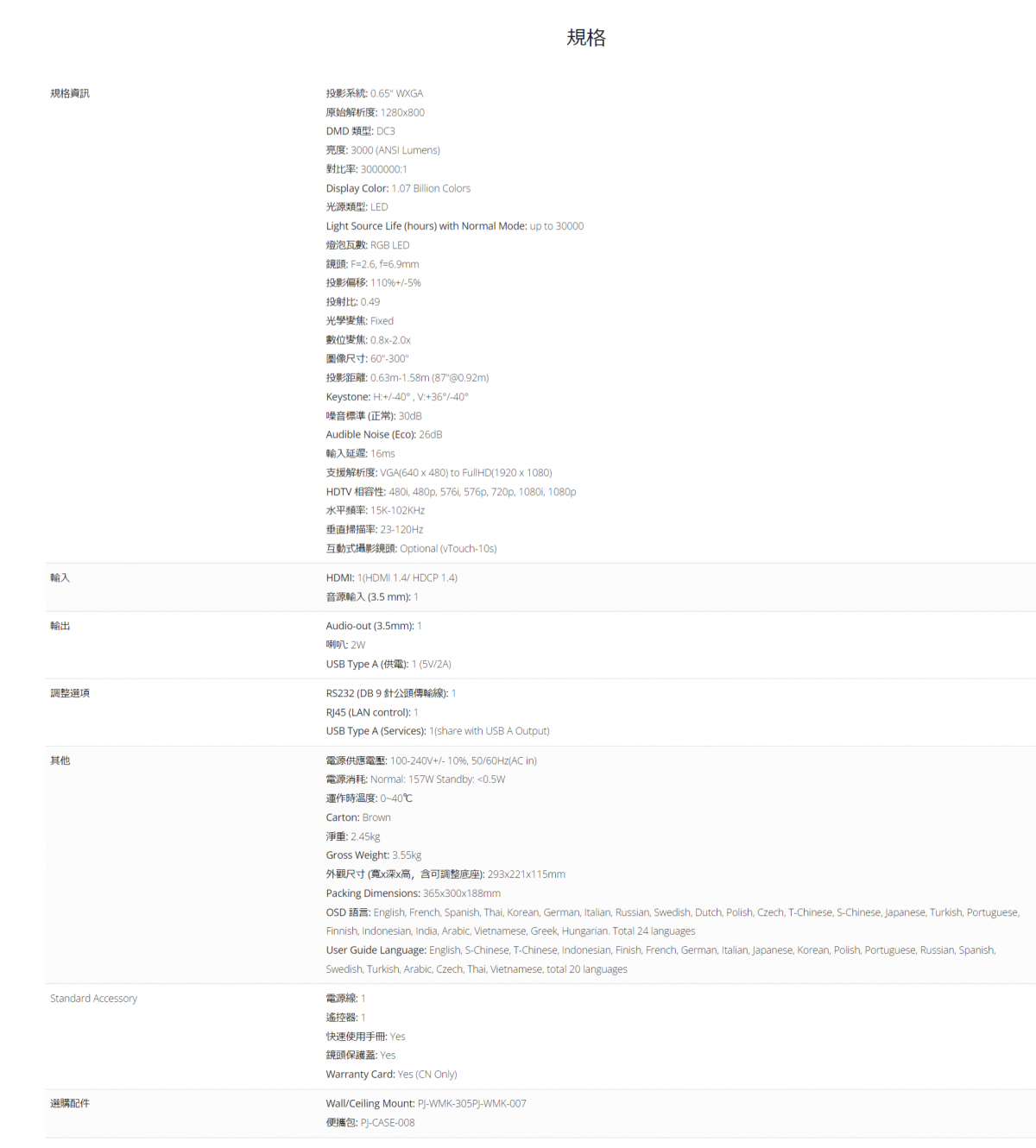 ★ 3,000 LED 流明在任何環境下提供清晰明亮的影像
