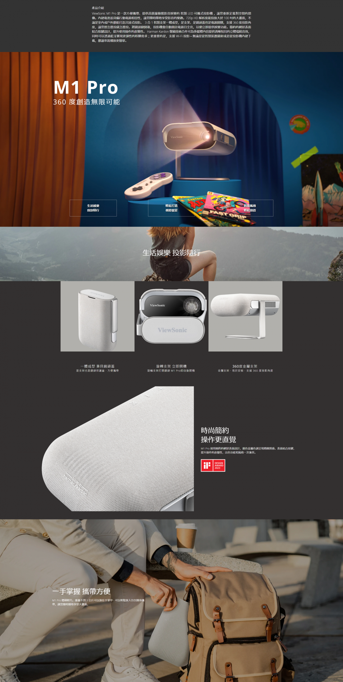 【ViewSonic 優派】M1 Pro 無線智慧LED可攜式投影機