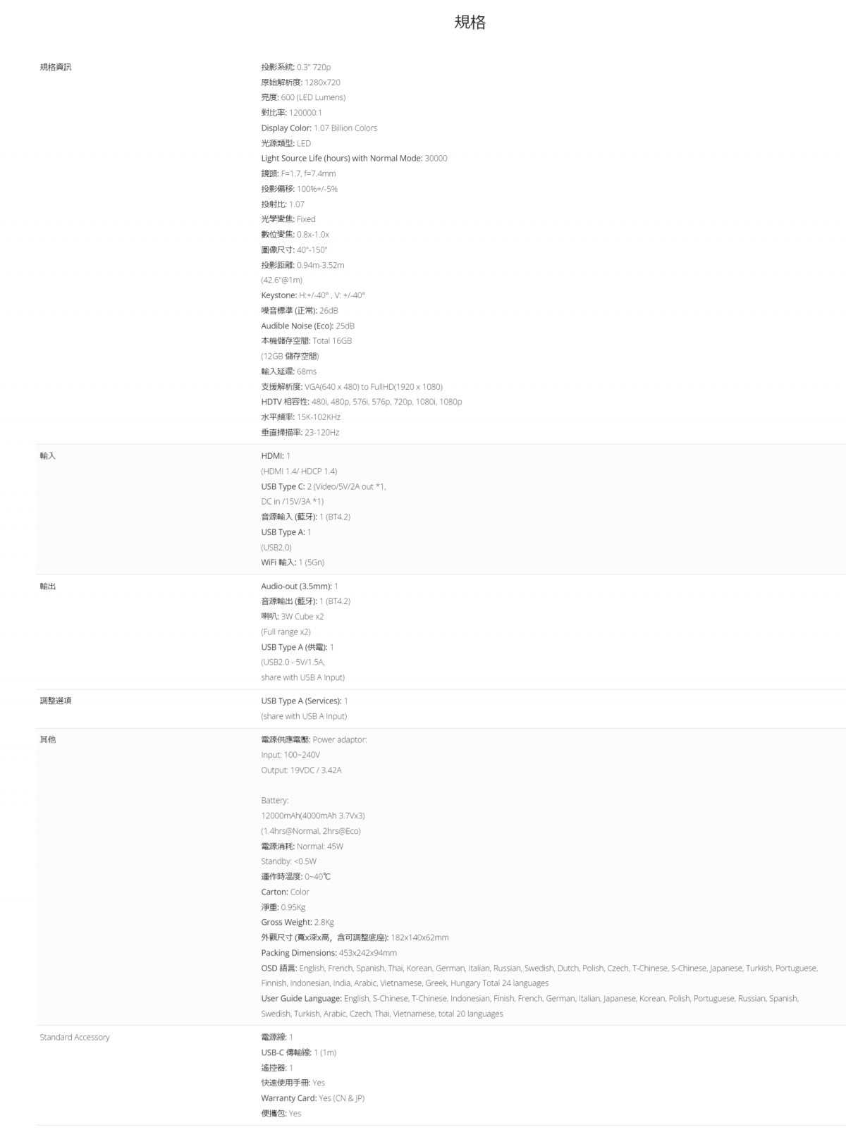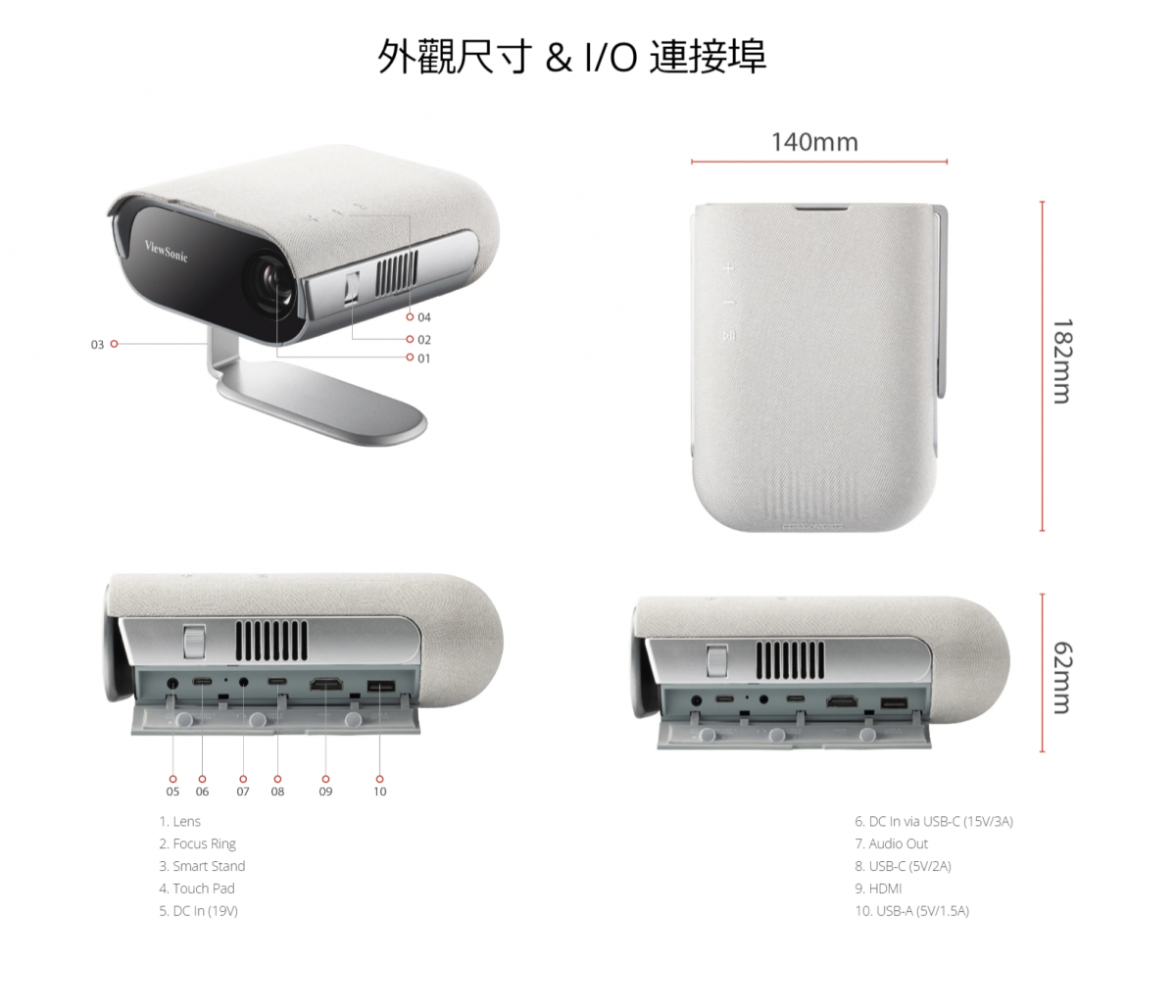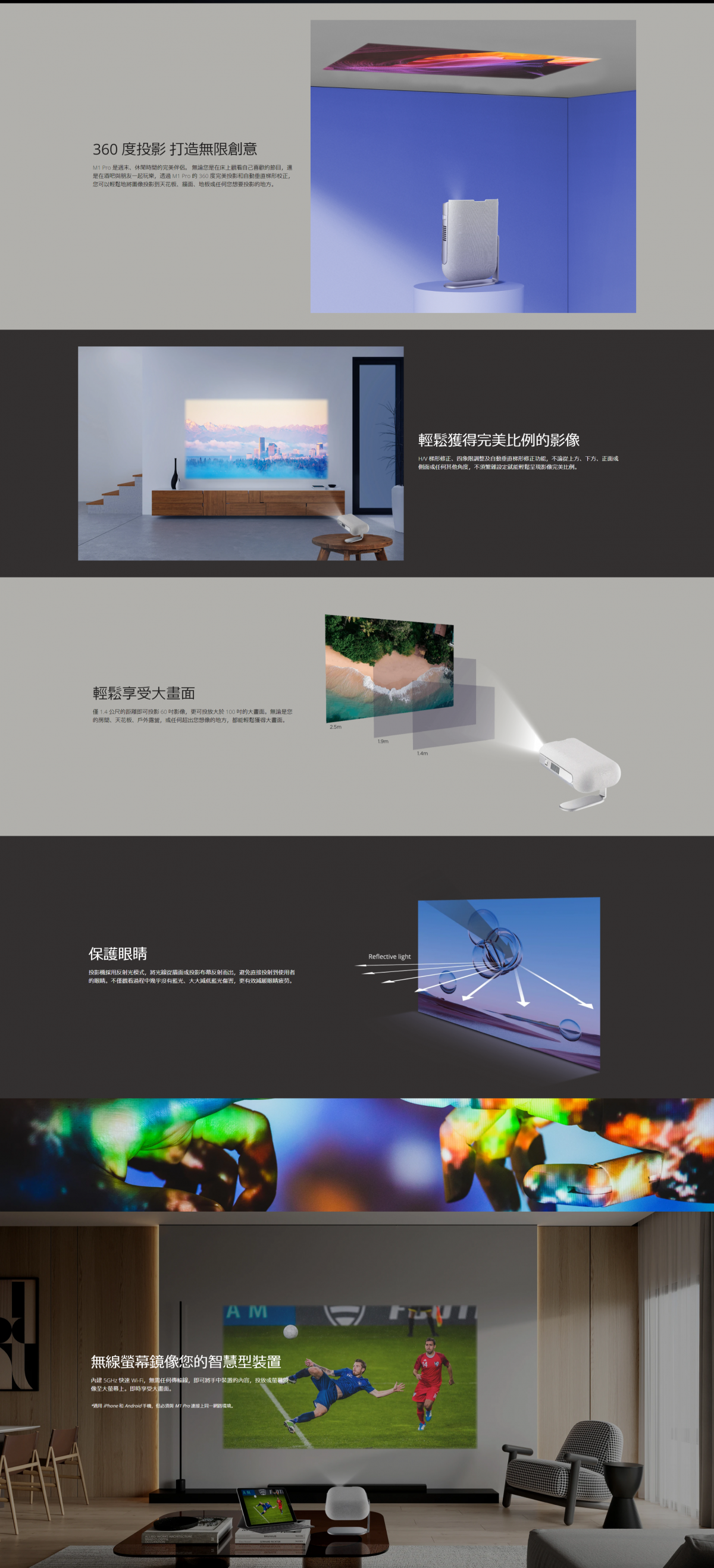 1.4 m 可投影 60 吋影像,最大可投 150 吋