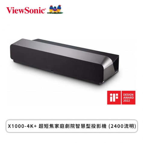 【ViewSonic 優派】X1000-4K+ 超短焦家庭劇院智慧型投影機 (2400流明)