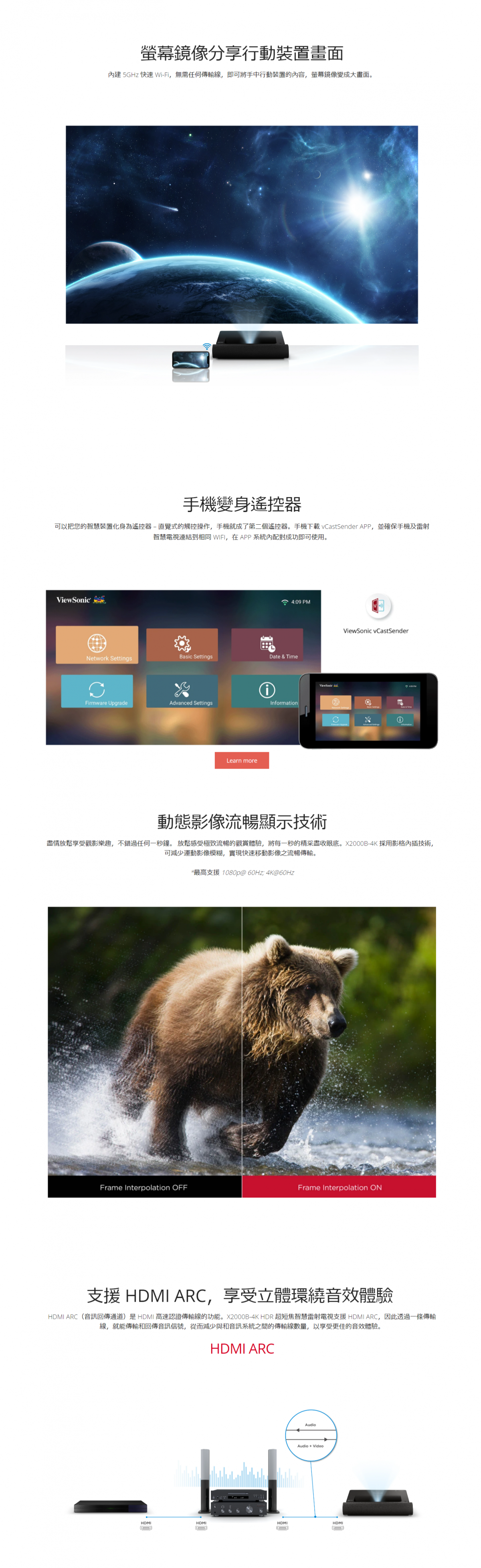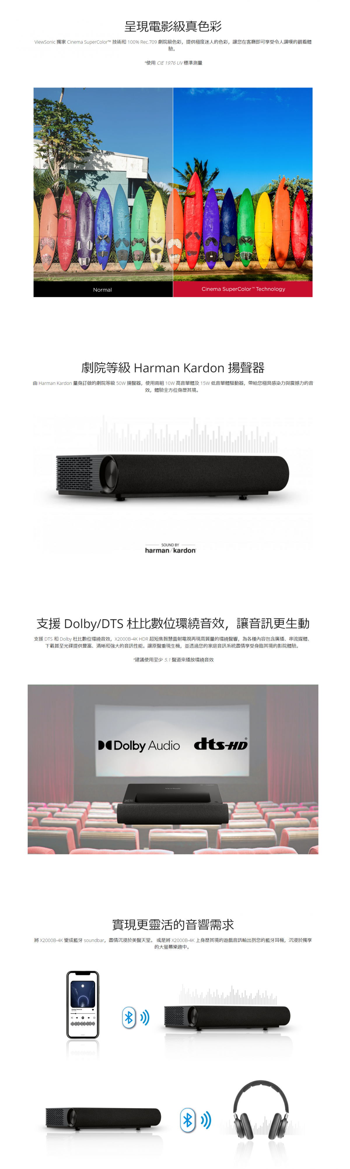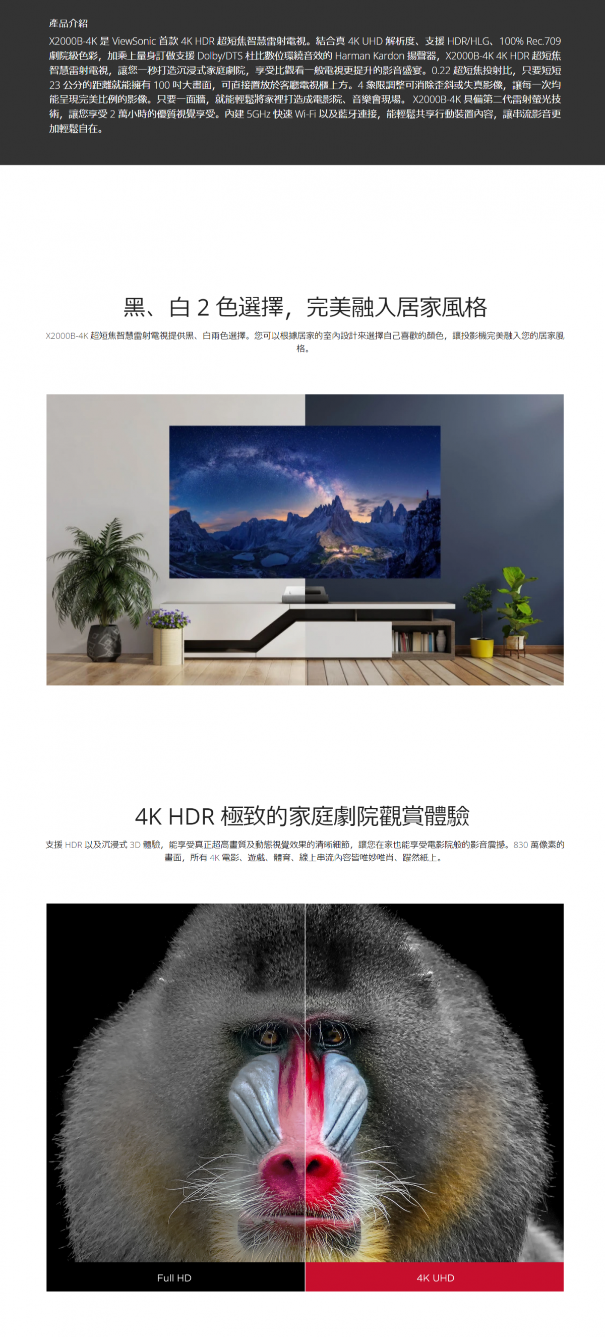 【ViewSonic 優派】X2000B-4K 超短焦智慧雷射電視投影機/黑 (2000流明)