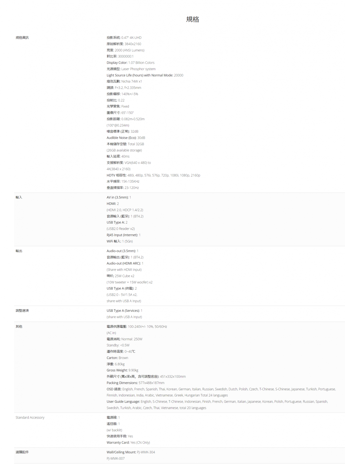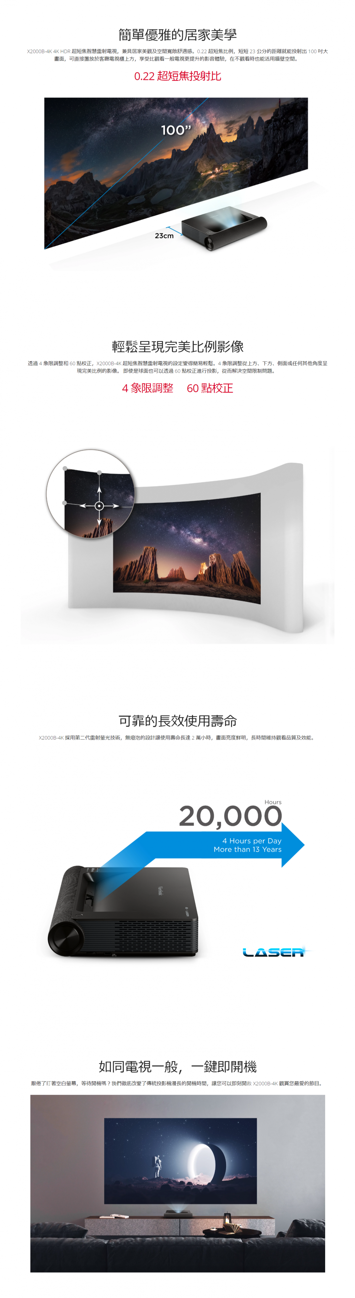 ★採用第 2 代雷射螢光技術,產品壽命達 2 萬小時