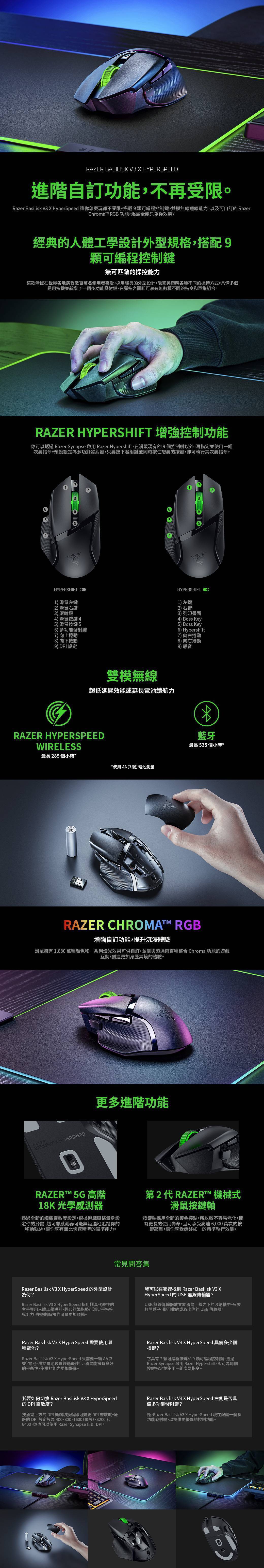 雷蛇Razer Basilisk V3 X HyperSpeed 巴塞利斯蛇V3 X 速度版電競滑鼠 /無線/藍芽/9鍵/RGB