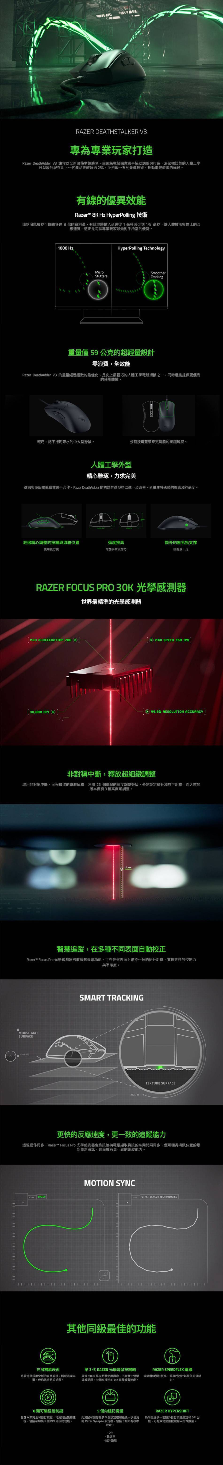● Focus Pro 30K 光學感測器、第3代RAZER光學滑鼠按鍵軸