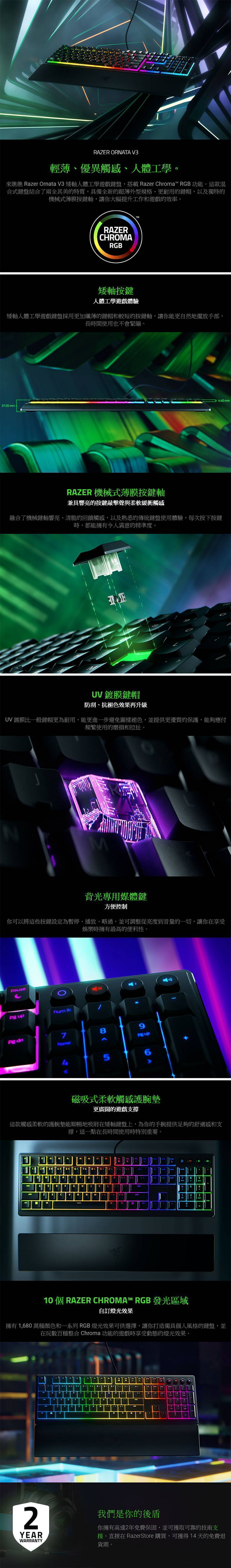 2. RAZER 機械式薄膜按鍵軸:兼具響亮的按鍵敲擊聲與柔軟緩衝觸感