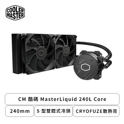 酷碼 MasterLiquid 240L Core (240mm/S 型雙腔式冷頭/CRYOFUZE散熱膏/12cm風扇*2/三年保)