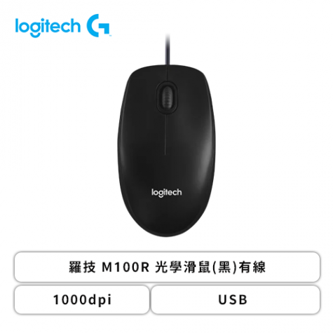 羅技 M100R 光學滑鼠(黑色/有線/1000dpi/73克/3年保固)