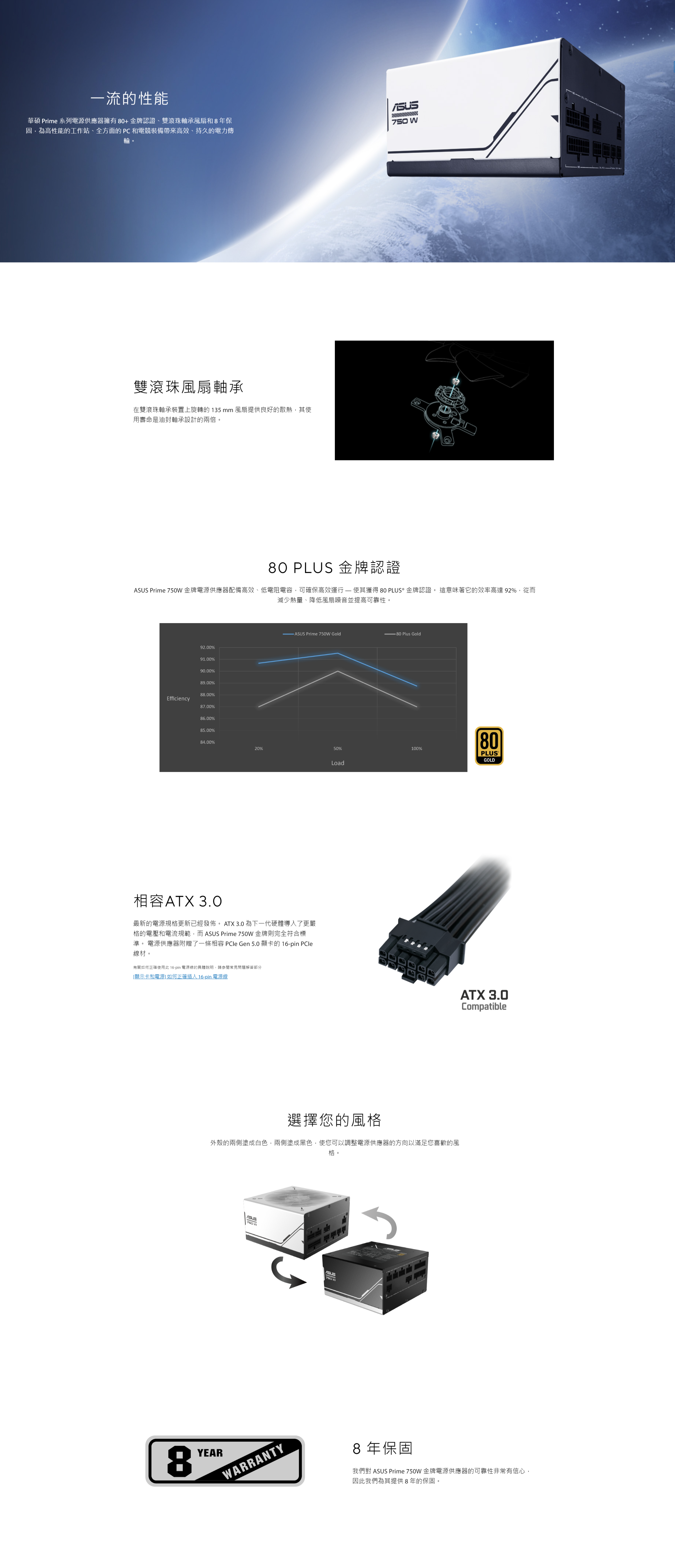 ▶ATX 3.0相容:ASUS Prime 金牌電源供應器符合 ATX 3.0規格