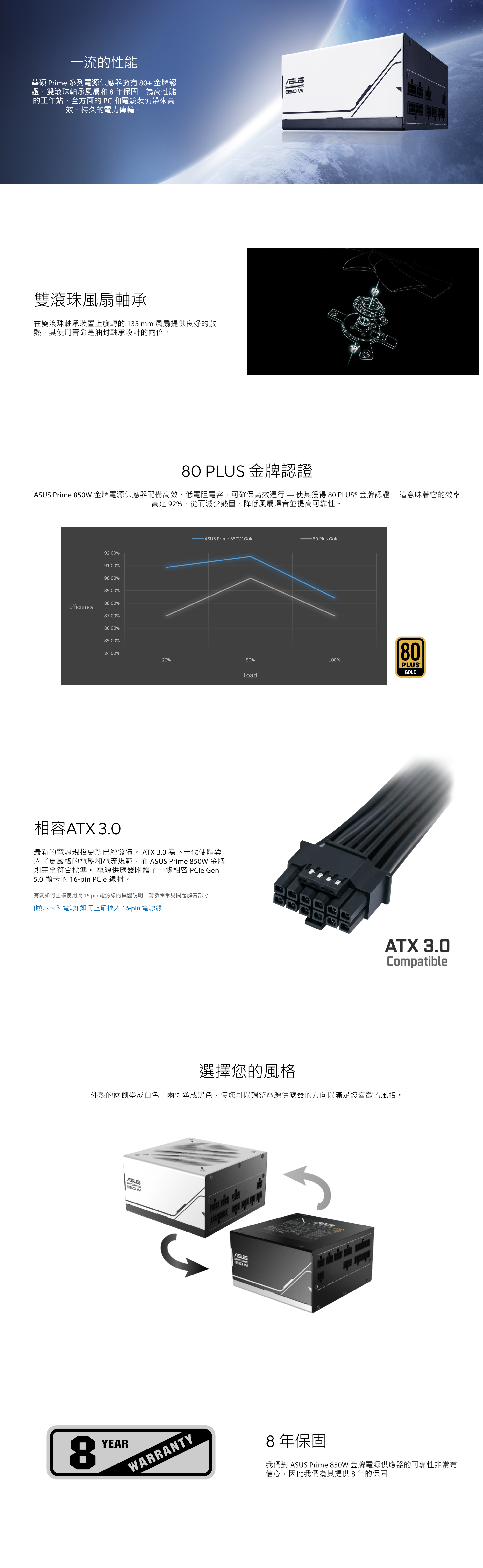 ▶ATX 3.0相容:ASUS Prime 金牌電源供應器符合 ATX 3.0規格