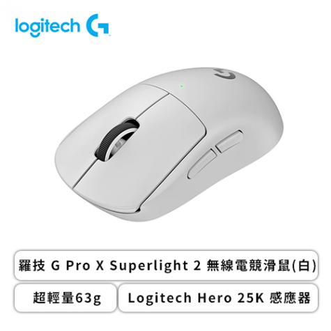 羅技 G Pro X Superlight 2 無線電競滑鼠(白色/無線/Logitech Hero 25K 感應器/60克/2年保固)