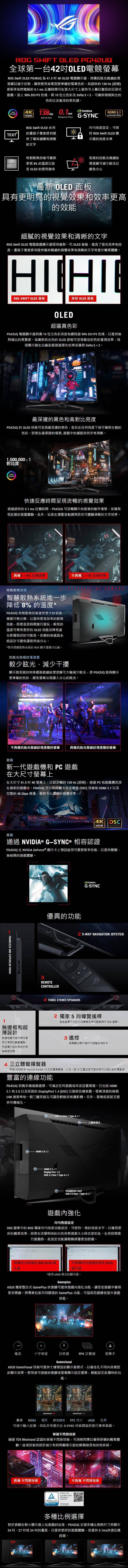 【42型】華碩 ROG Swift PG42UQ 電競螢幕 (DP/HDMI/OLED/4K/0.1ms/138Hz/G-SYNC/HDR10/內建喇叭/兩年保固)
