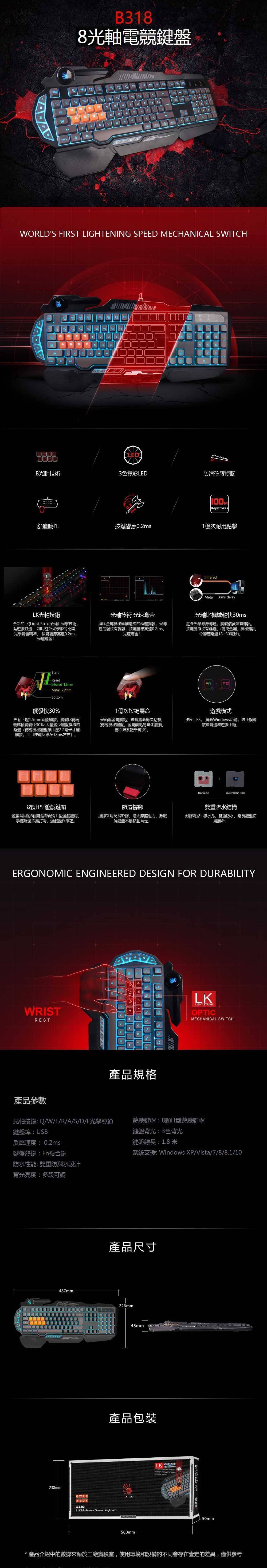 - ◆ 全新LK光軸技術,比機械軸快30ms,專為遊戲打造