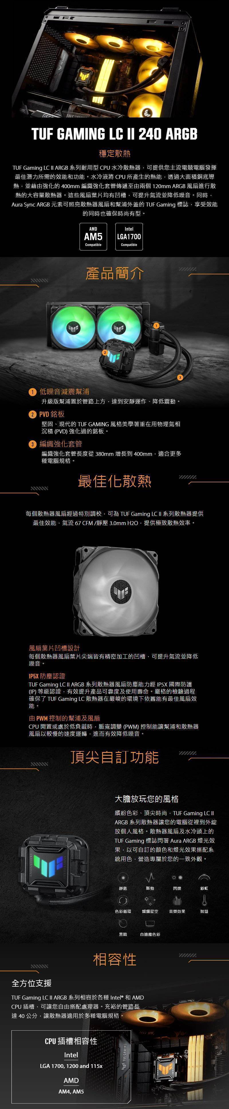 華碩 TUF GAMING LC II 240 ARGB (240mm/ARGB水冷頭/12cm風扇*2/低噪音減震幫浦/六年保固)