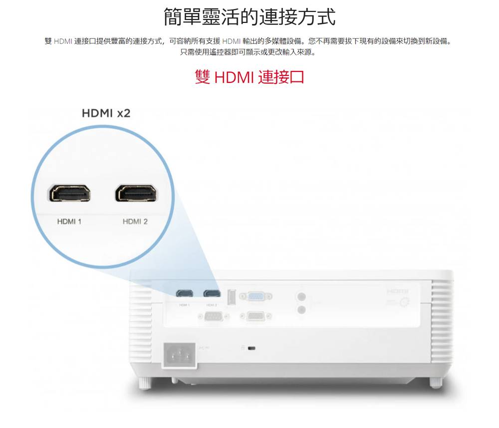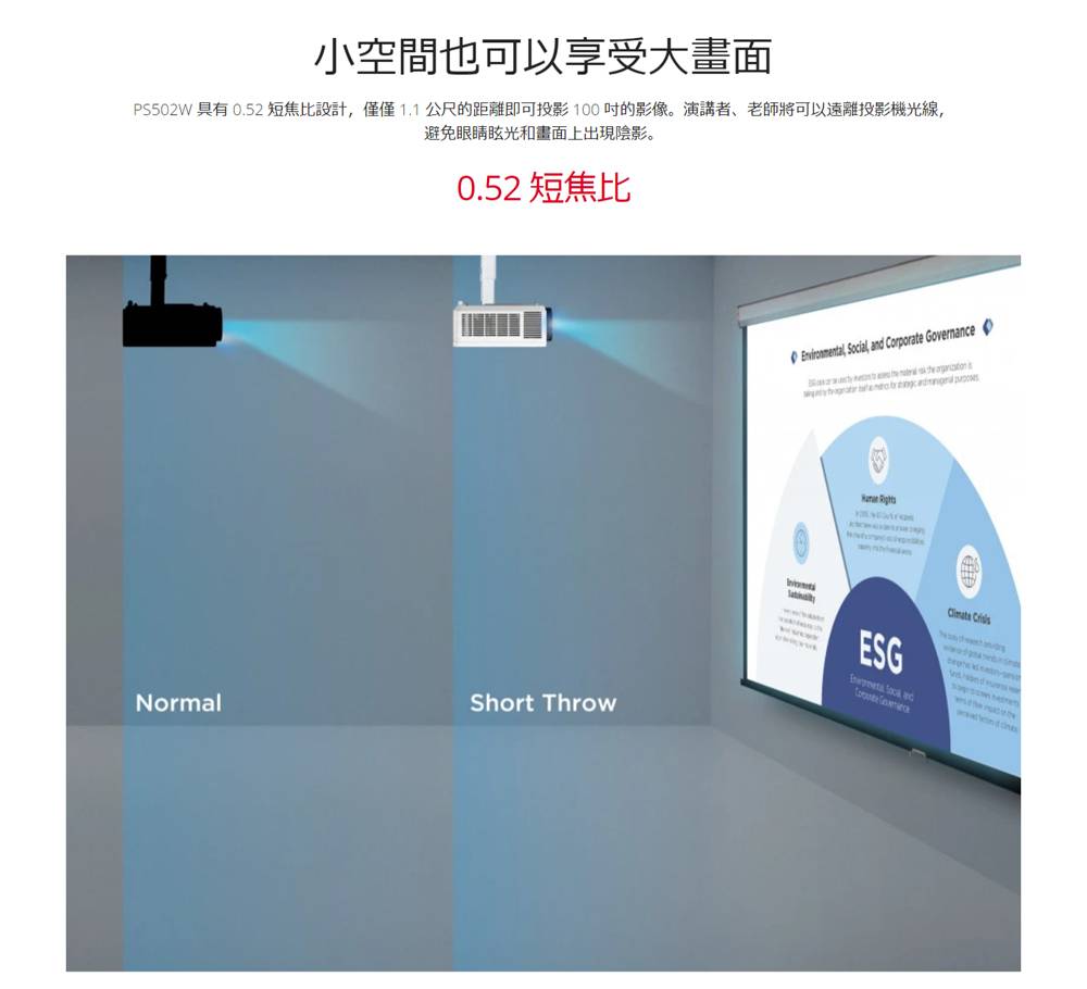 • 0.616 短焦投射比,小空間可獲得大畫面