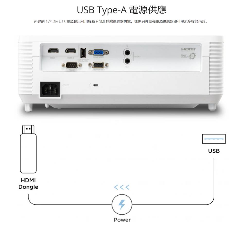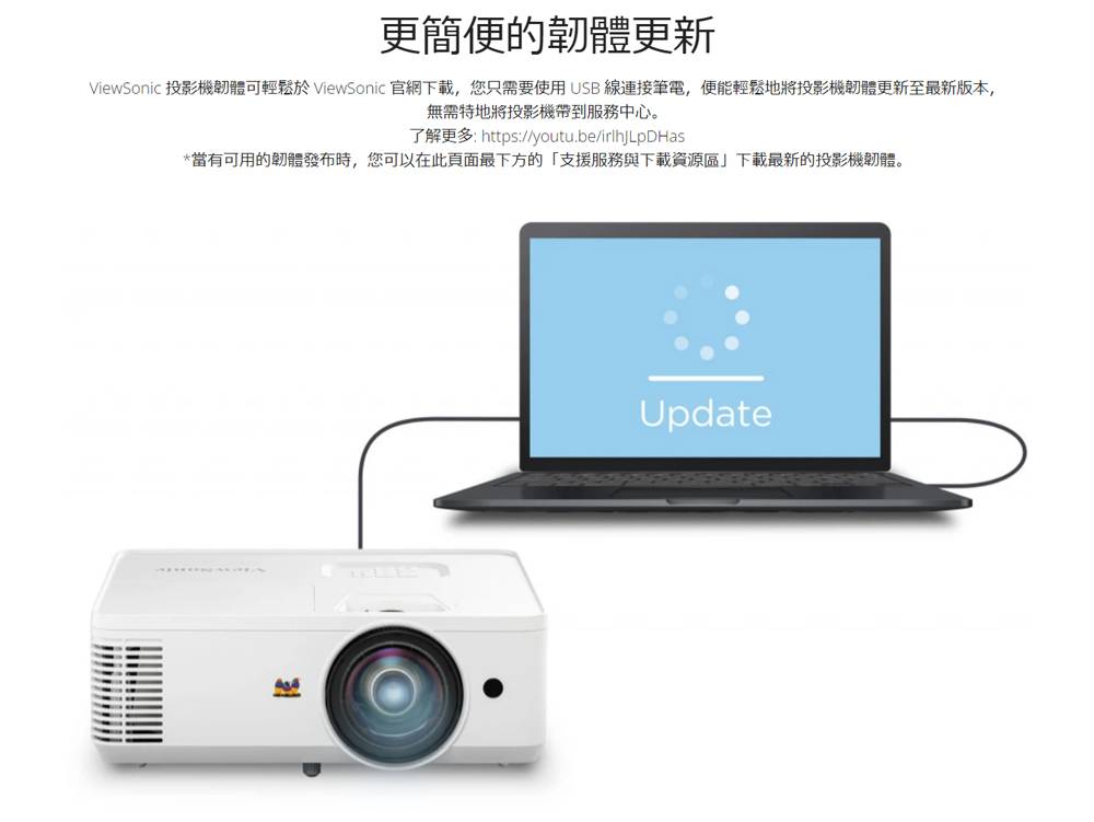 • 便捷的投影機軟件更新,可通過 USB 連接實現