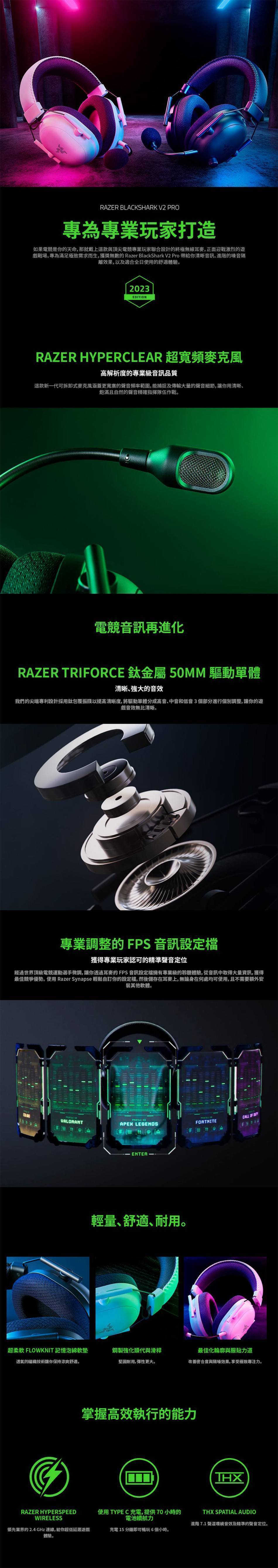 雷蛇Razer BlackShark V2 Pro 黑鯊V2 Pro 無線電競耳機-黑色/2023年版/無線/記憶耳墊/心形指向麥克風