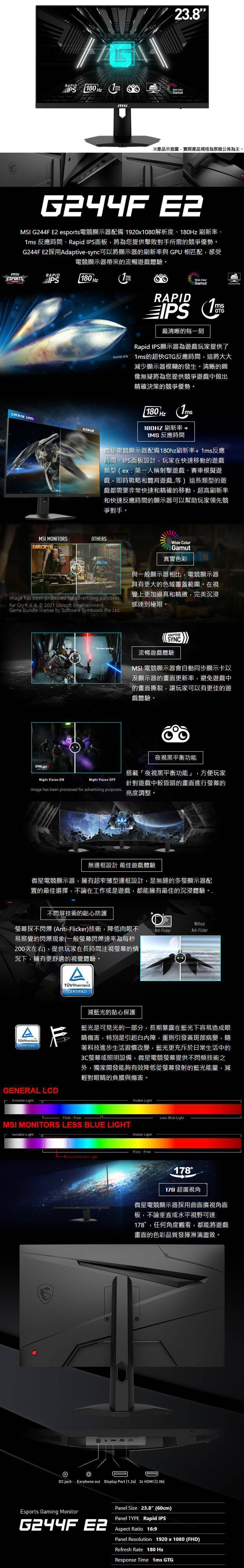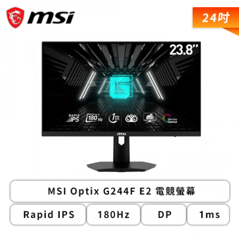 【24型】MSI G244F E2 電競螢幕 (DP/HDMI/Rapid IPS/1ms/180Hz/Adaptive-Sync/黑平衡/無喇叭/三年保固)