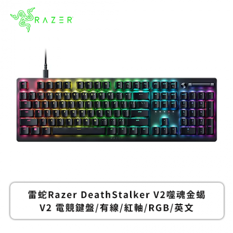 雷蛇Razer DeathStalker V2噬魂金蝎 V2 電競鍵盤(黑色/有線/紅軸/RGB/英文/2年保固)