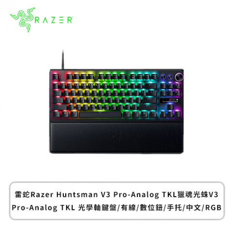 雷蛇Razer Huntsman V3 Pro-Analog TKL獵魂光蛛 V3 Pro-Analog TKL 光學軸鍵盤(黑色/有線/光學軸/手托/RGB/中文/2年保固)