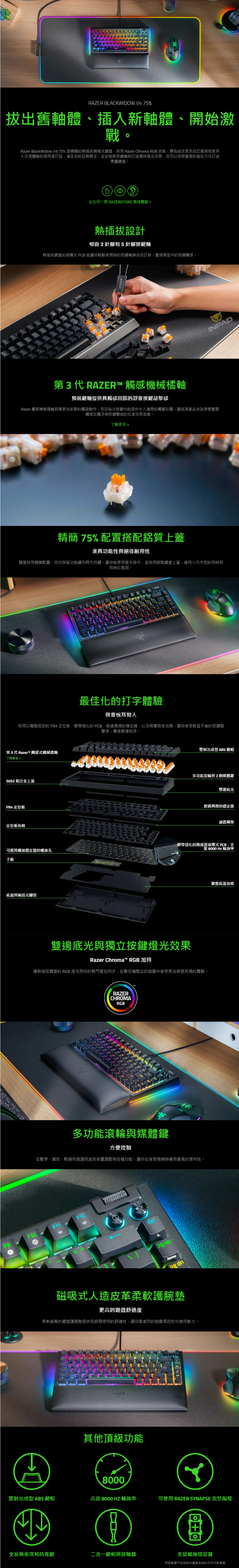 雷蛇Razer BlackWidow V4 75% 黑寡婦 V4 75% 幻彩版機械式鍵盤-Razer機械軸-觸感式