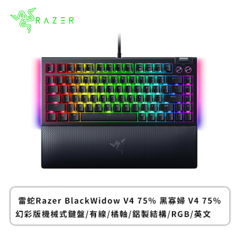 雷蛇Razer BlackWidow V4 75% 黑寡婦 V4 75% 幻彩版機械式鍵盤(黑色/有線/Razer機械軸-觸感式/鋁製結構/RGB/英文/1年保固)