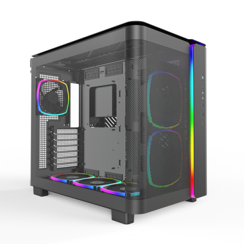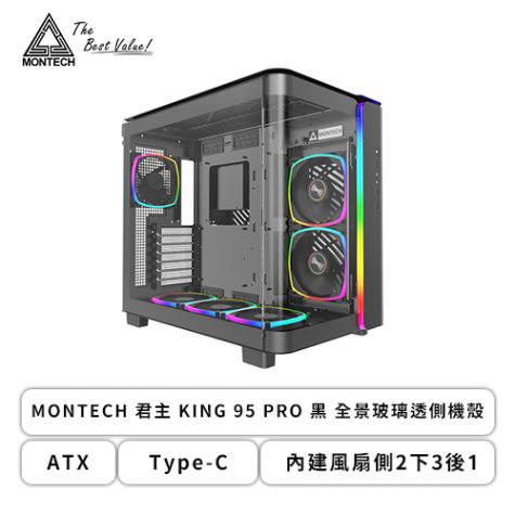MONTECH KING 95 PRO 黑 全景玻璃機殼 (ATX/Type-C/內建風扇側2下3後1/曲面玻璃/ARGB燈條/雙倉設計/雙前面板(玻璃+鐵網)/顯卡420mm/塔散175mm)