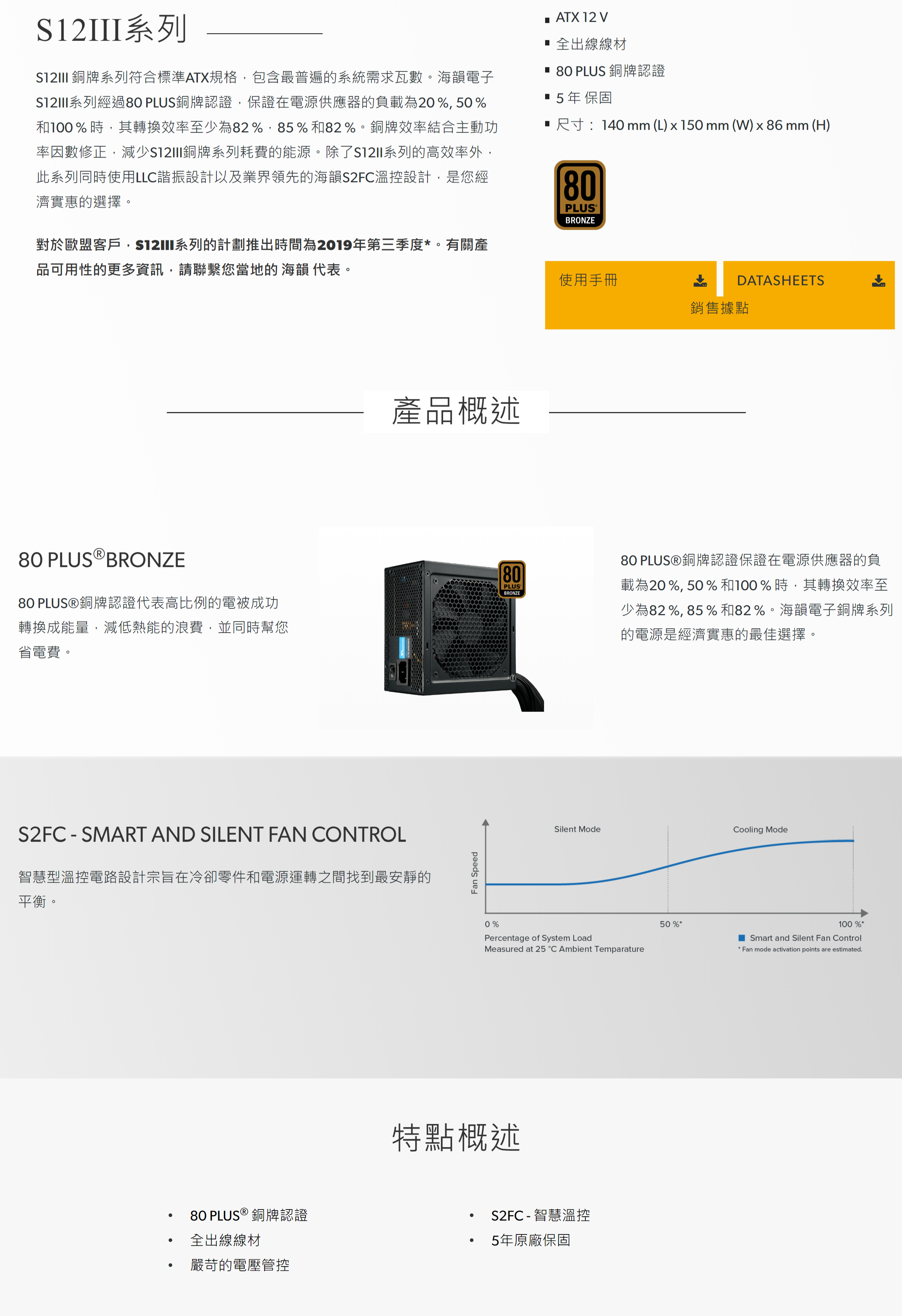 海韻 S12III-500W (80+銅牌/ATX/直出/五年保固)