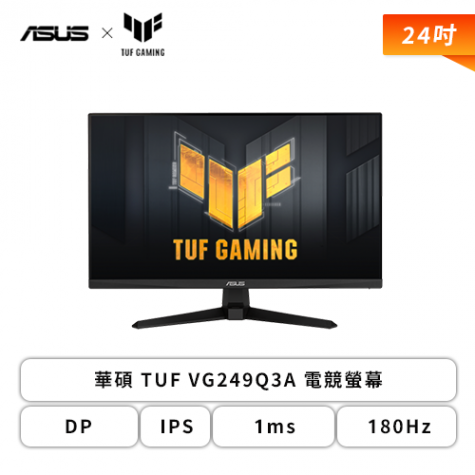 【24型】華碩 TUF VG249Q3A 電競螢幕 (DP/HDMI/Fast IPS/1ms/180Hz/FreeSync Premium/可變超頻驅動/99% sRGB/三年保固)【福利品出清】