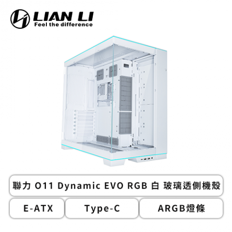 聯力 O11 Dynamic EVO RGB 白 全景玻璃機殼 (E-ATX/Type-C/ARGB燈條/全景玻璃/顯卡455.7mm/塔散167mm)