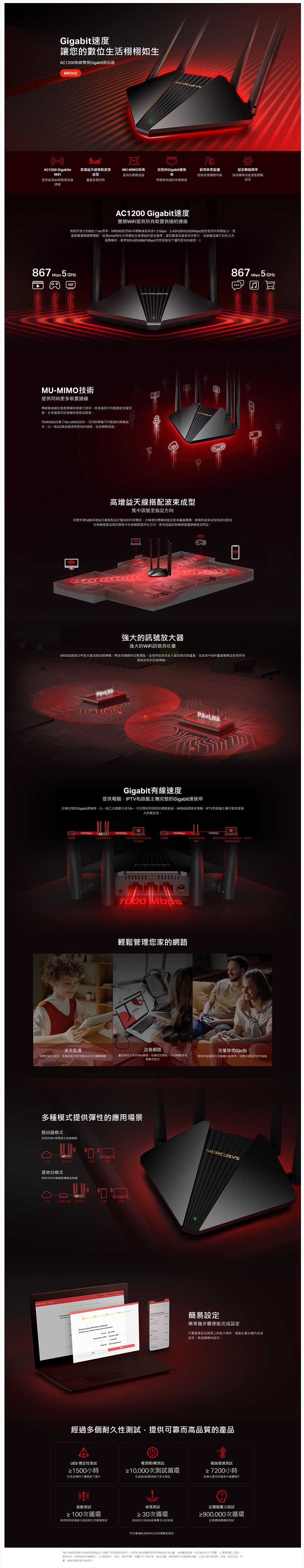 水星 MR30G AC1200 Gigabit 雙頻 WiFi 無線網路路由器/雙頻/四天線/三年保固