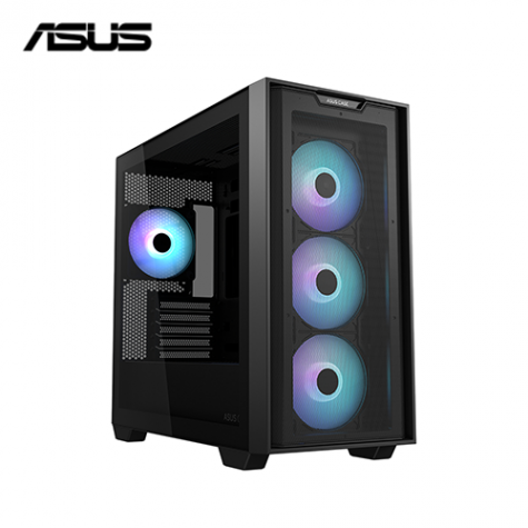 華碩 A21 PLUS 黑 玻璃透側機殼 (M-ATX/內建風扇前3後1/ARGB燈光/支援背插主板/顯卡380mm/塔散165mm)