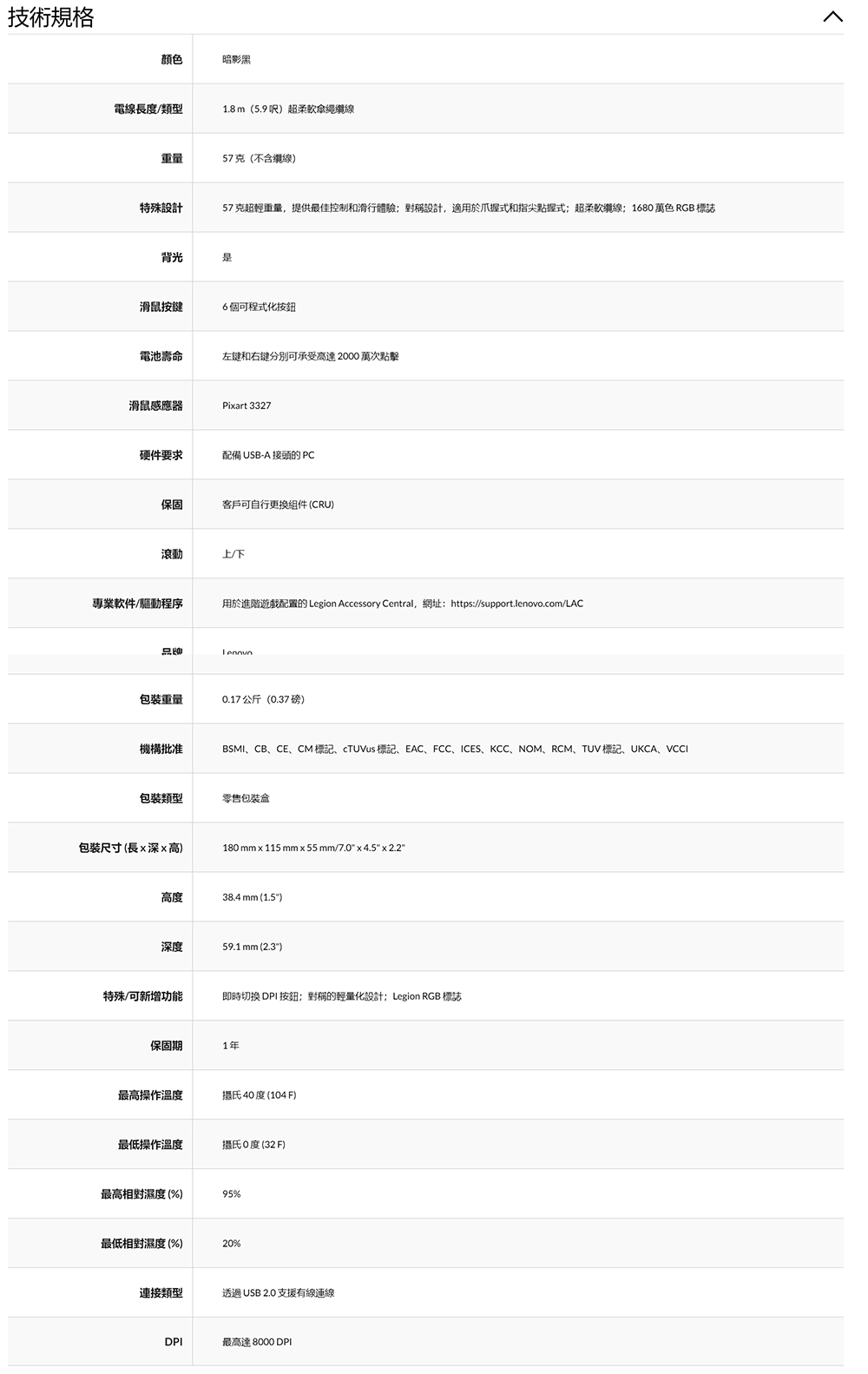 Lenovo Legion M300s RGB 遊戲滑鼠 GY51H47350