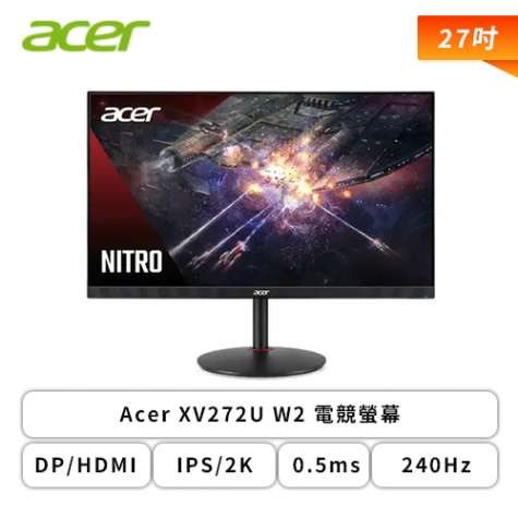 【27型】Acer XV272U W2 電競螢幕 (DP/HDMI/IPS/2K/0.5ms/240Hz/FreeSync Premium/HDR400/可升降/可旋轉/內建喇叭/三年保固)