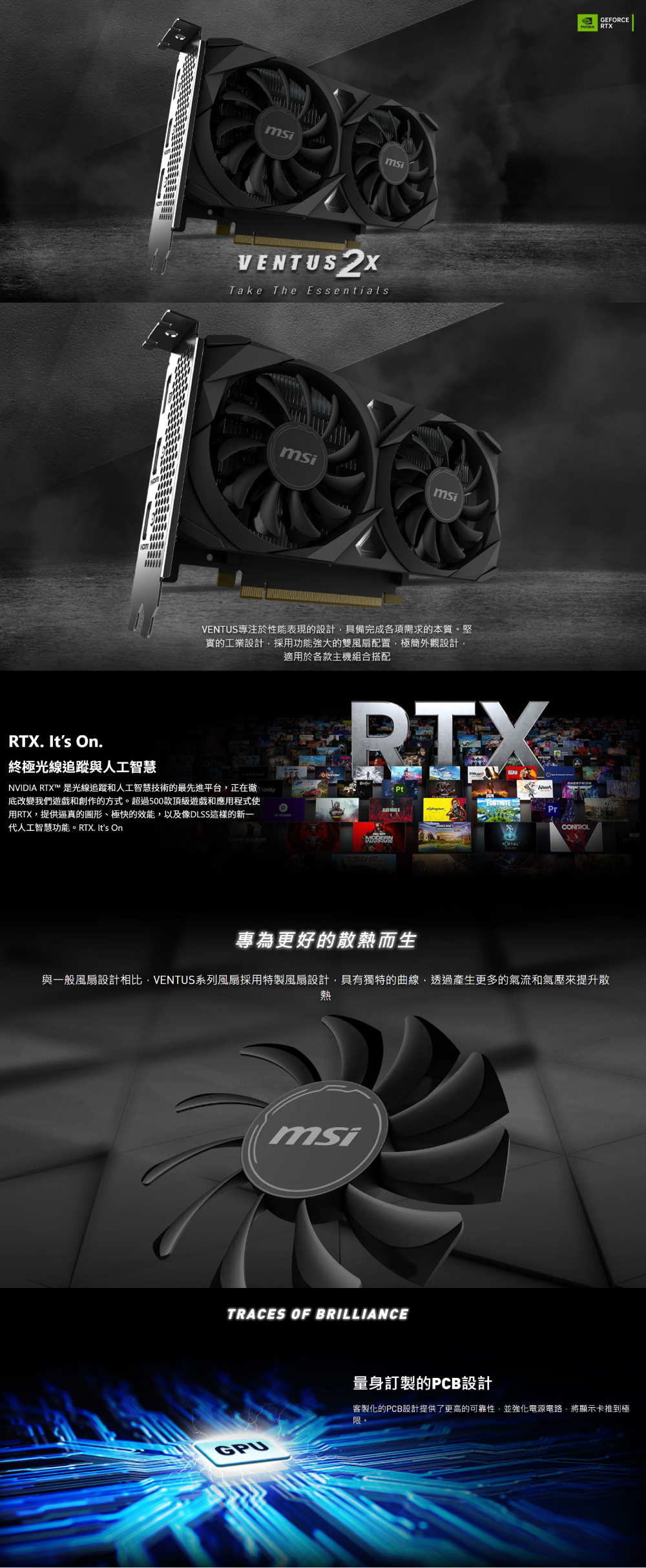 微星 RTX 3050 VENTUS 2X 6G OC (std:1492MHz/雙風扇/註冊四年保/長18.9cm)
