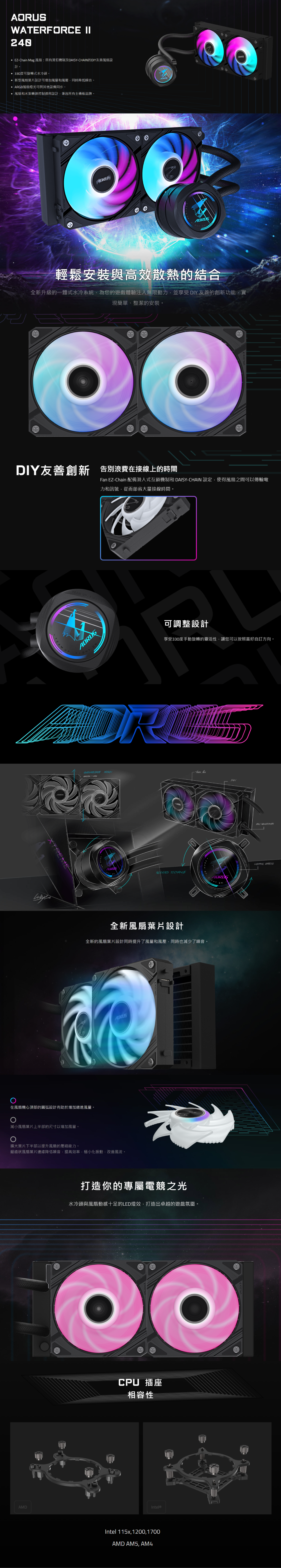 技嘉 AORUS WATERFORCE II 240 鷹魂二代 (240mm/可旋轉水冷頭/12cm風扇*2/卡扣風扇/五年保)