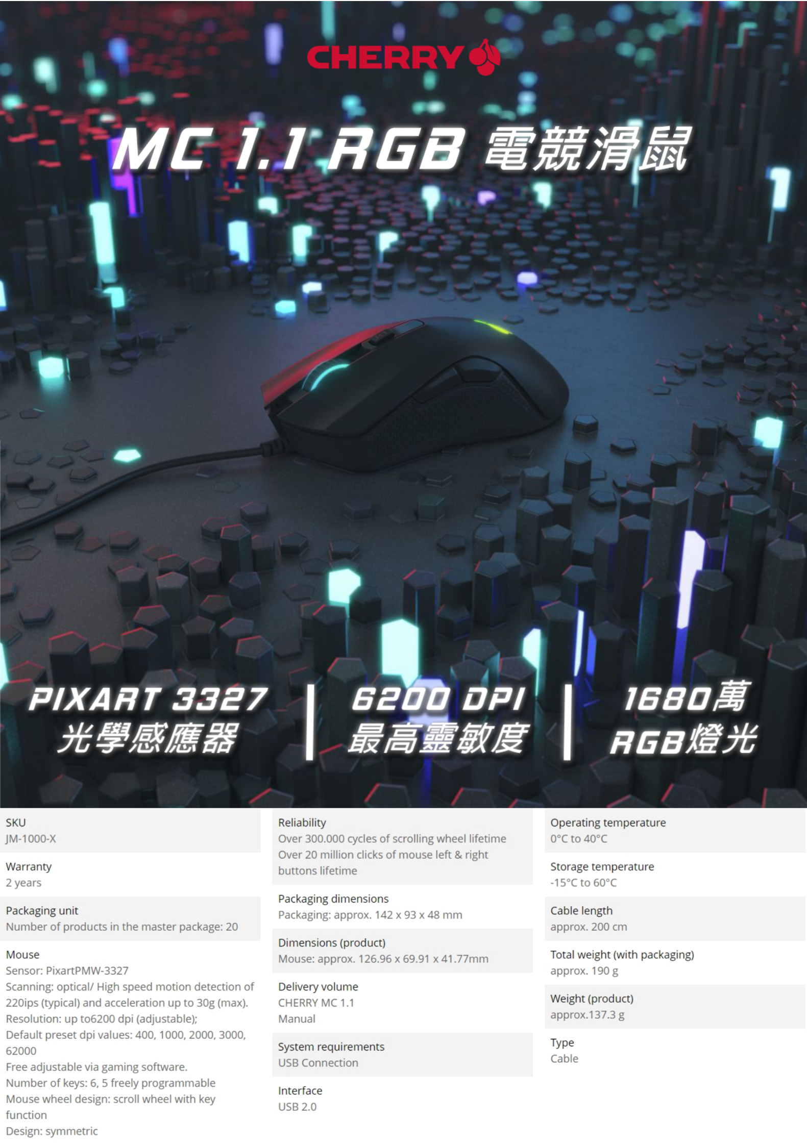 【不單售】CHERRY 櫻桃 MC1.1 RGB電競滑鼠-不挑色