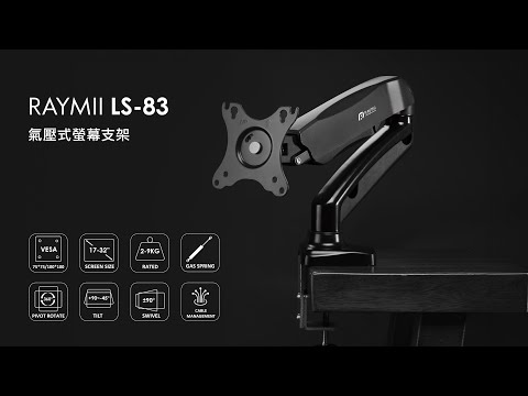 Raymii 瑞米 LS-83 黑 (單螢幕支臂/氣壓式設計/可夾桌+穿孔/最大支援32吋/最大載重9kg)