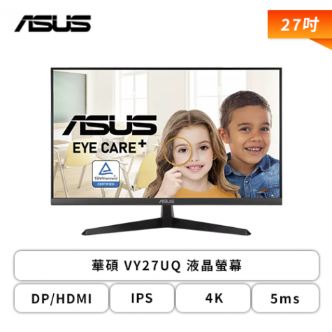 【27型】華碩 VY27UQ 液晶螢幕 (DP/HDMI/IPS/4K/5ms/Adaptive Sync/HDR10/不閃屏/低藍光/內建喇叭/三年保固)