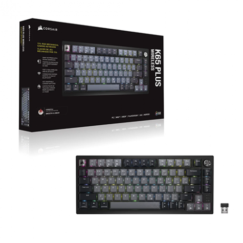海盜船CORSAIR K65 PLUS WIRELESS 三模無線機械式電競鍵盤(灰色/有線-無線-藍牙/MLX紅軸/RGB/英文/2年保固)