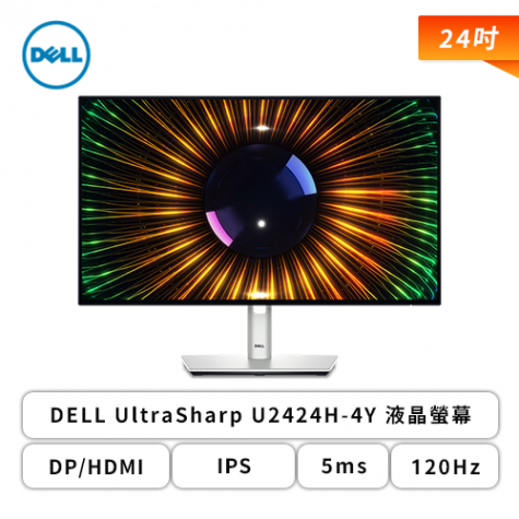 【24型】DELL UltraSharp U2424H-4Y 液晶螢幕 (DP/HDMI/Type-C/IPS/5ms/120Hz/100% sRGB/85% DCI-P3/Delta E< 2/菊鍊串/TÜV護眼認證/環境光線感應器/可升降/可旋轉/無喇叭/四年保固)